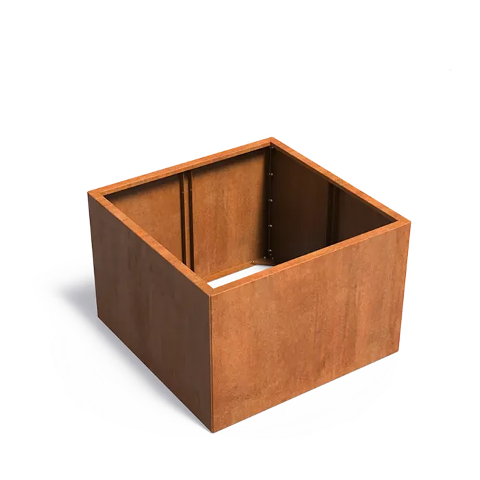 Material: Cortenstahl Breite: 400-1200 mm Tiefe: 400-1200 mm Höhe: 400-800 mm Oberrand: 50x25 mm Material Dicke: 1,5 oder 2 mm Funktion: wasserfest, Sonderanfertigung möglich