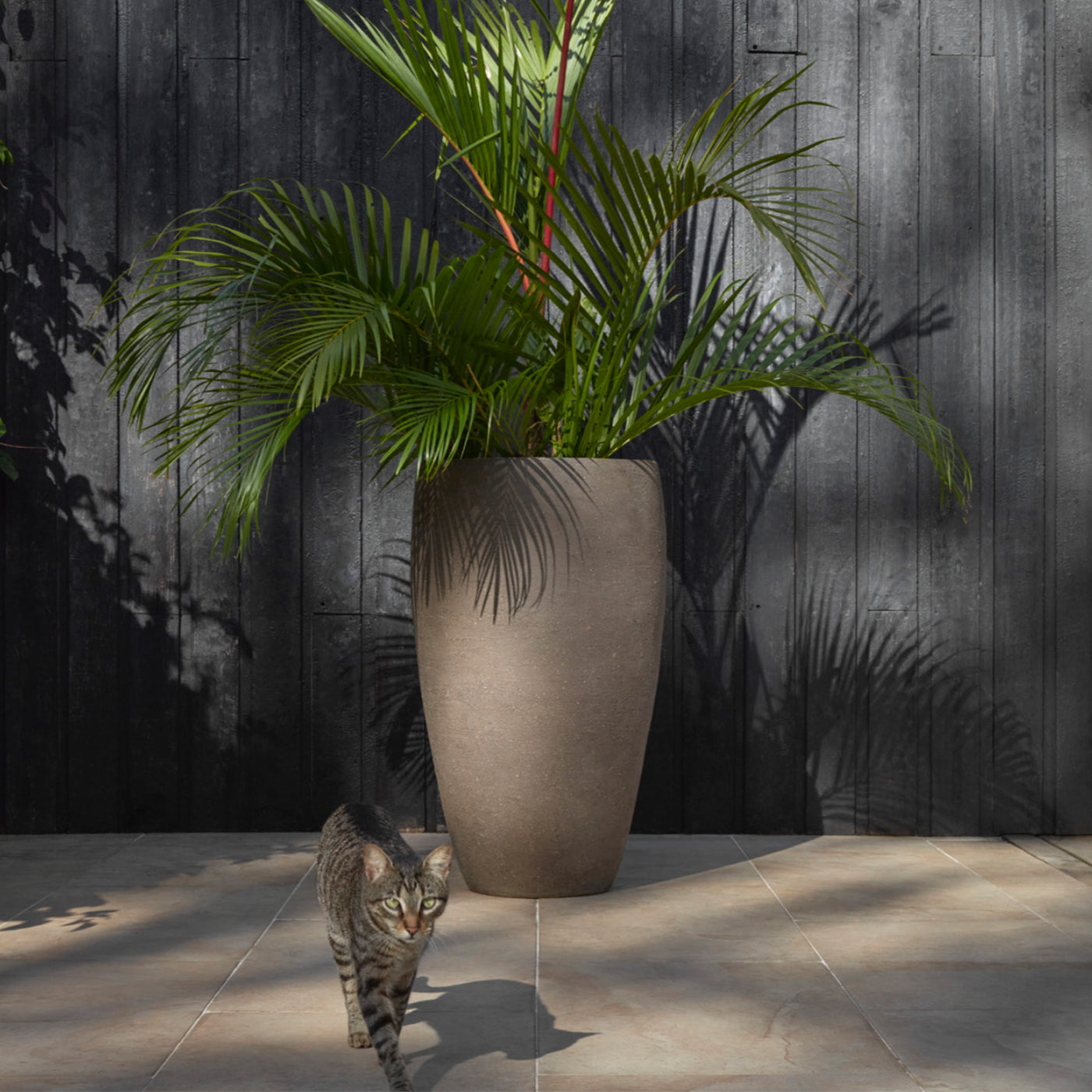 SY ist ein handgefertigtes Gefäß von Atelier Vierkant. Die schönen grauen Terrakottakübel schimmern bei Sonnenlicht leicht bräunlich und wirken sehr elegant. Diese Gefäße sind Dank eines speziellen Brennvorgangs frostbeständig.
