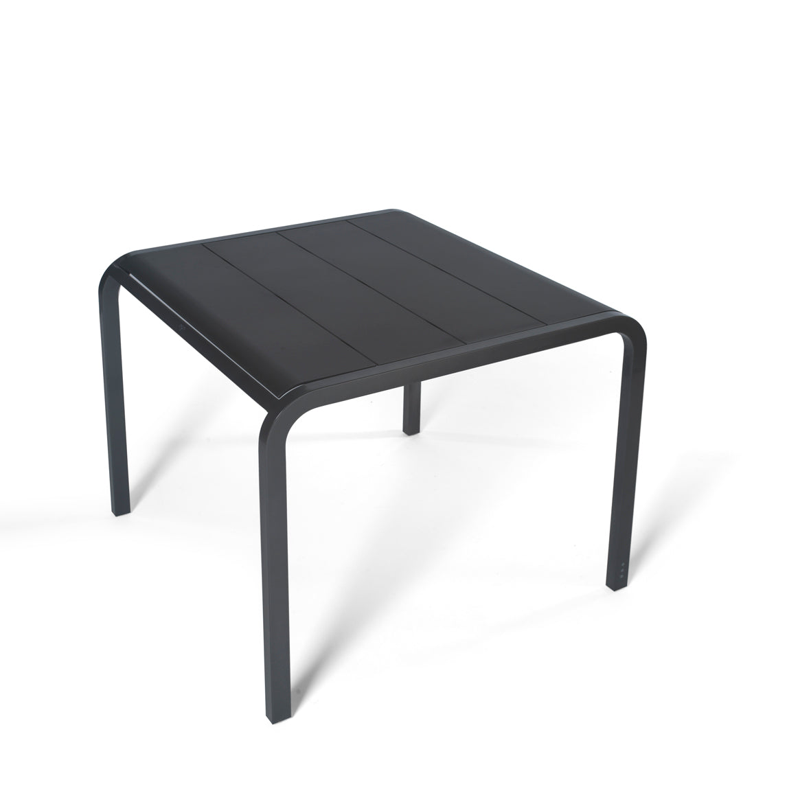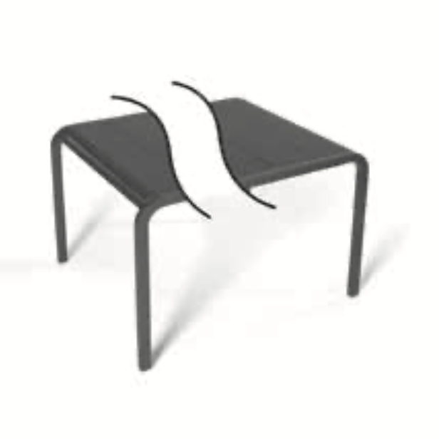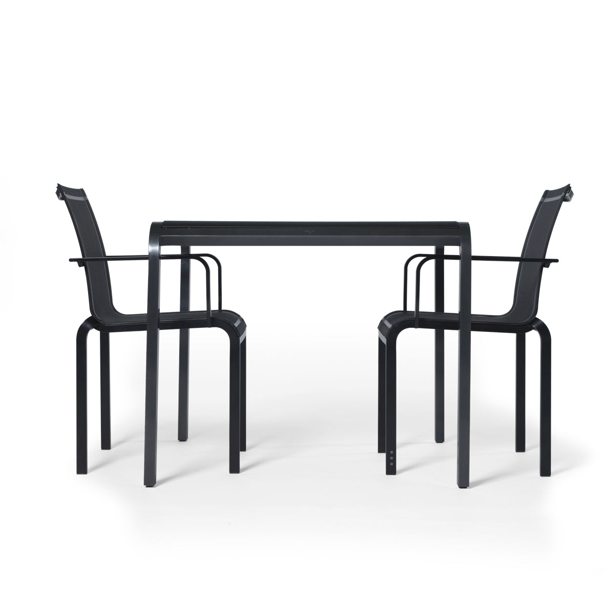 Gestell und Platte der Tische bestehen aus pulverbeschichtetem Aluminium.