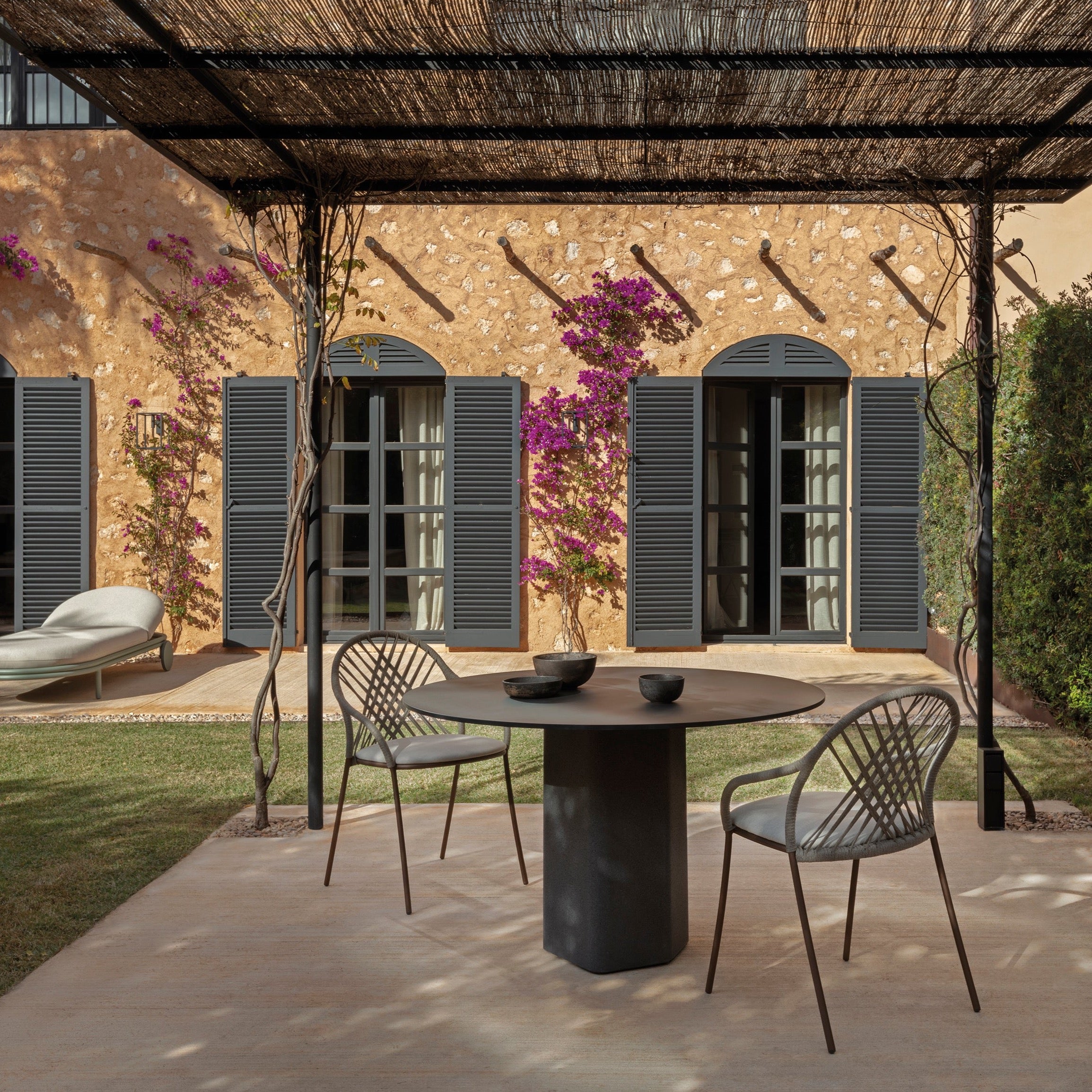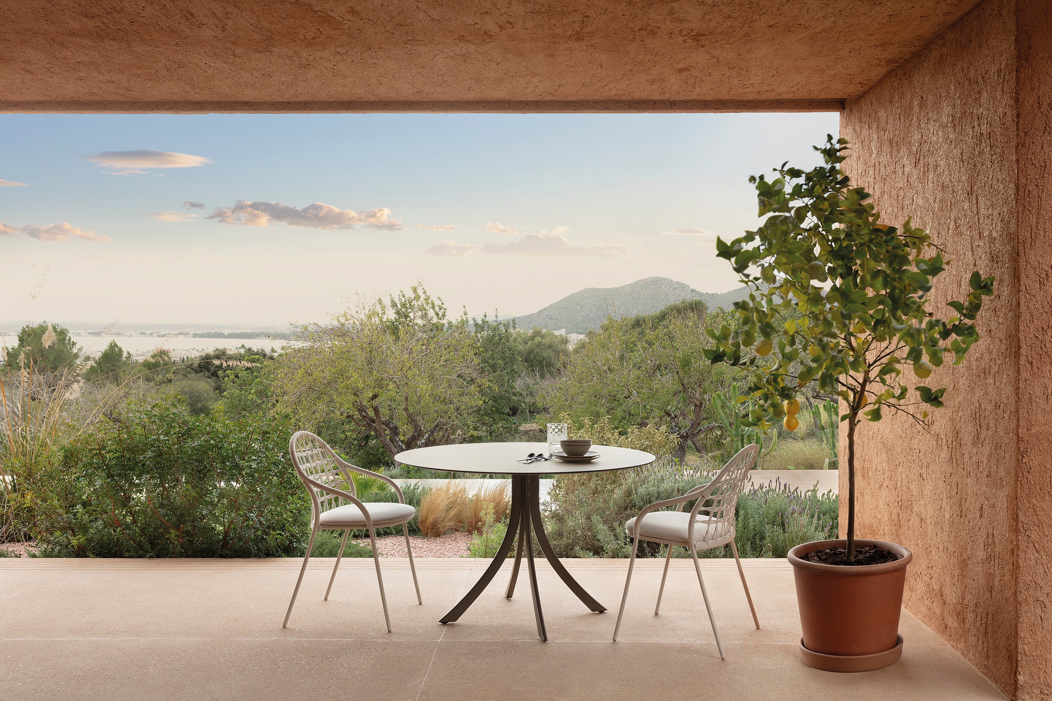 Leicht und weich. So sind die Petale Stühle aus Edelstahl und Textil. Ein minimalistisches Design, hergestellt aus Outdoor-Materialien, das sowohl elegante als auch informelle Umgebungen passt. Einfach zu handhaben dank seiner Leichtigkeit und Stapelbarkeit.