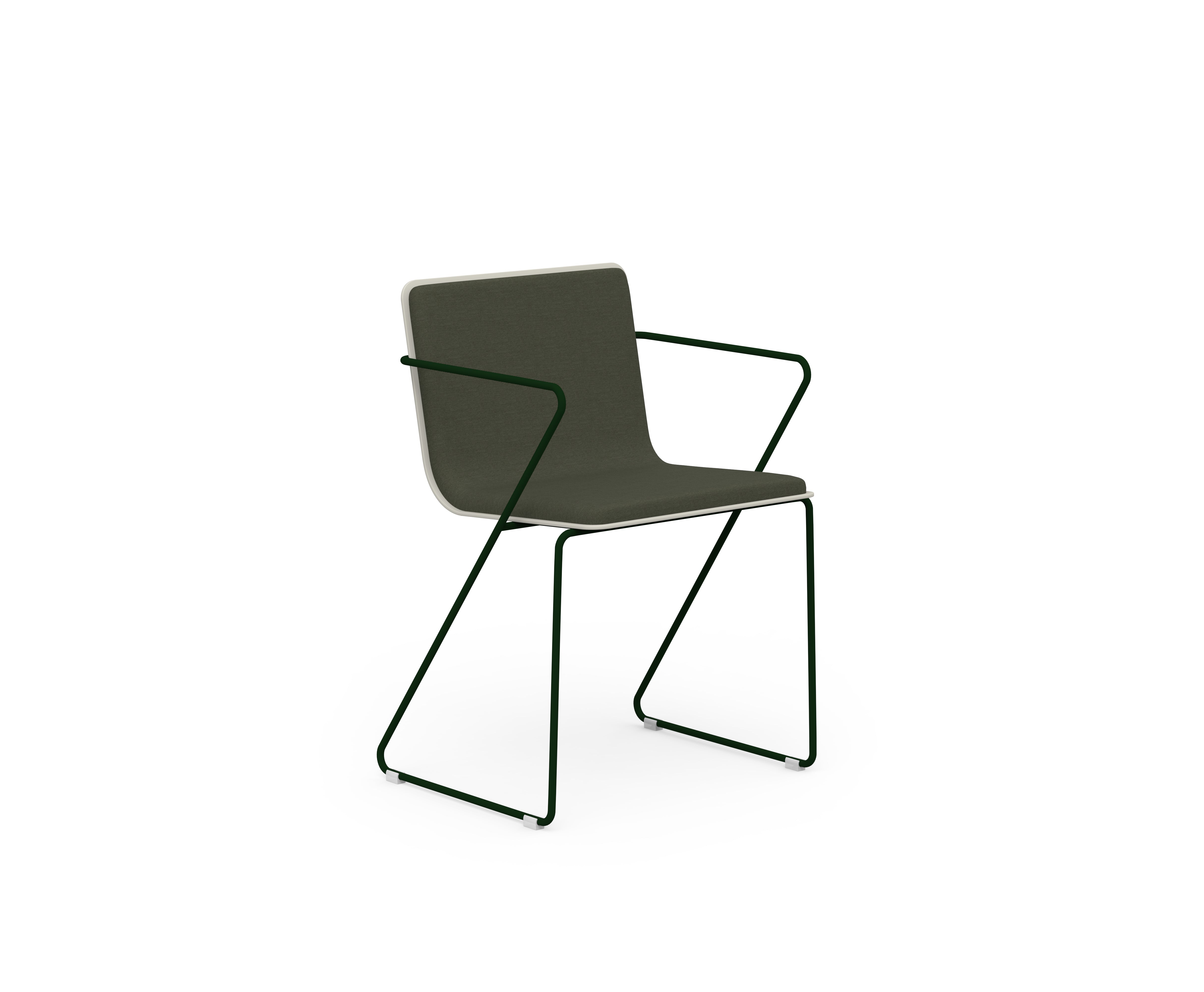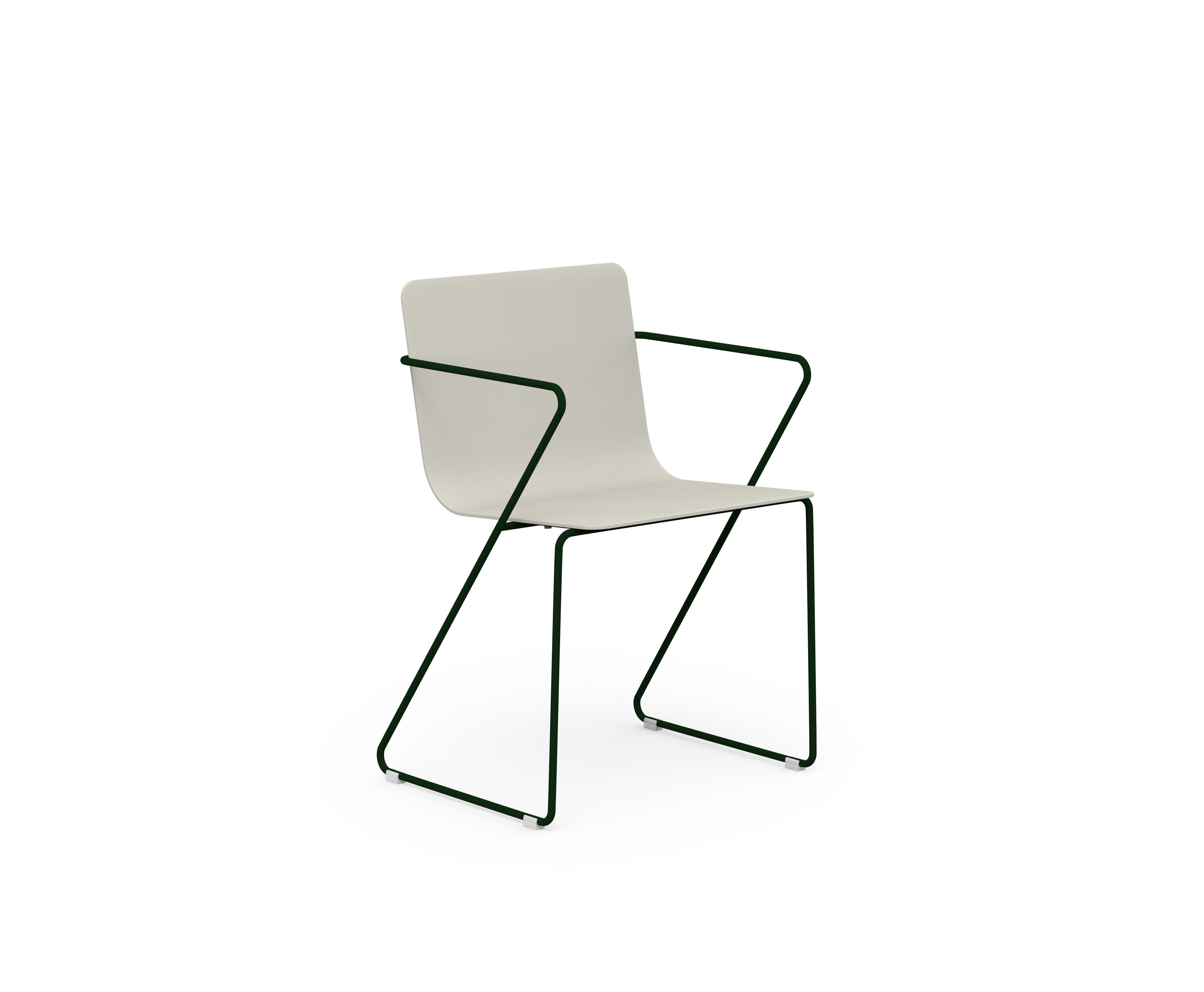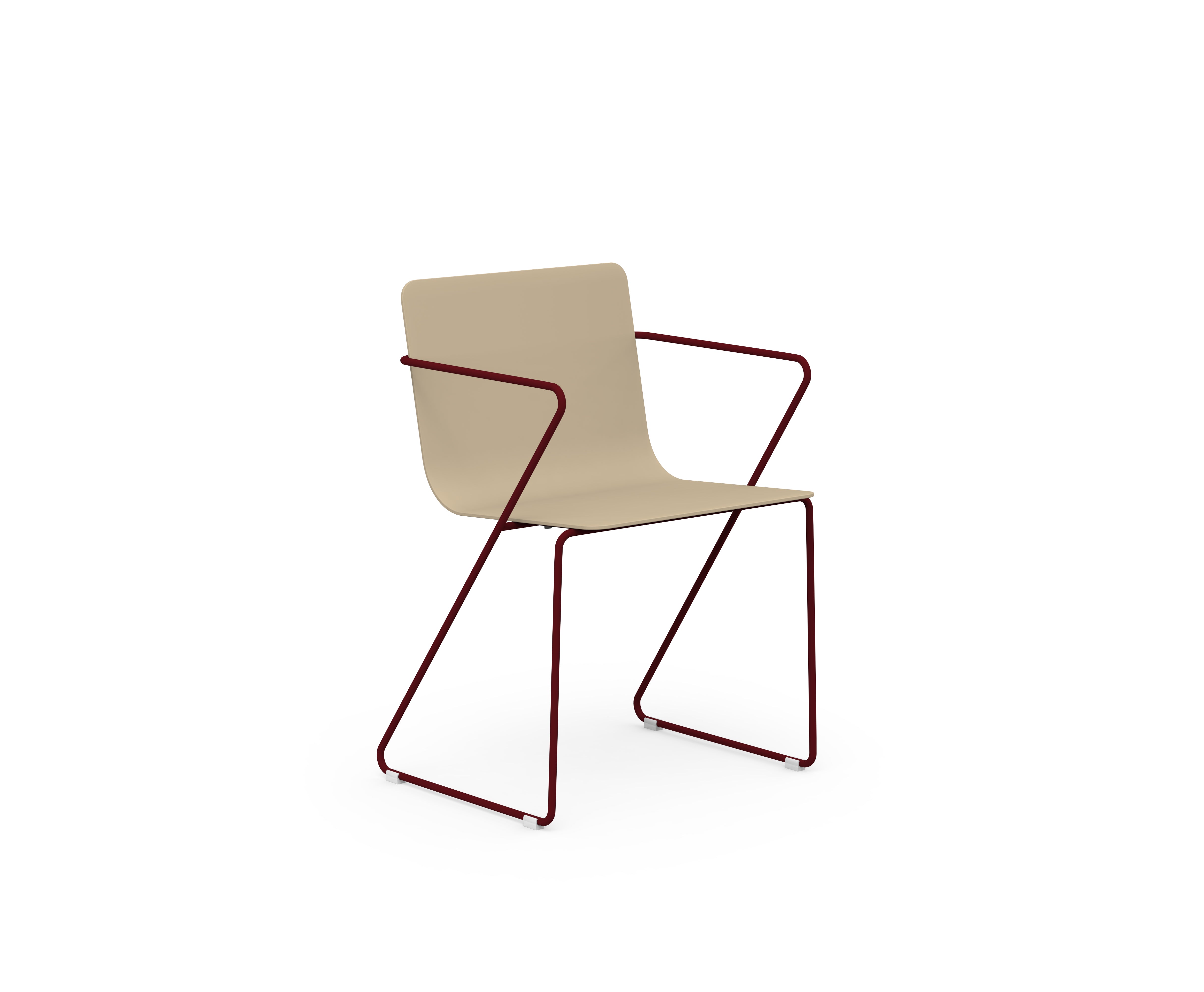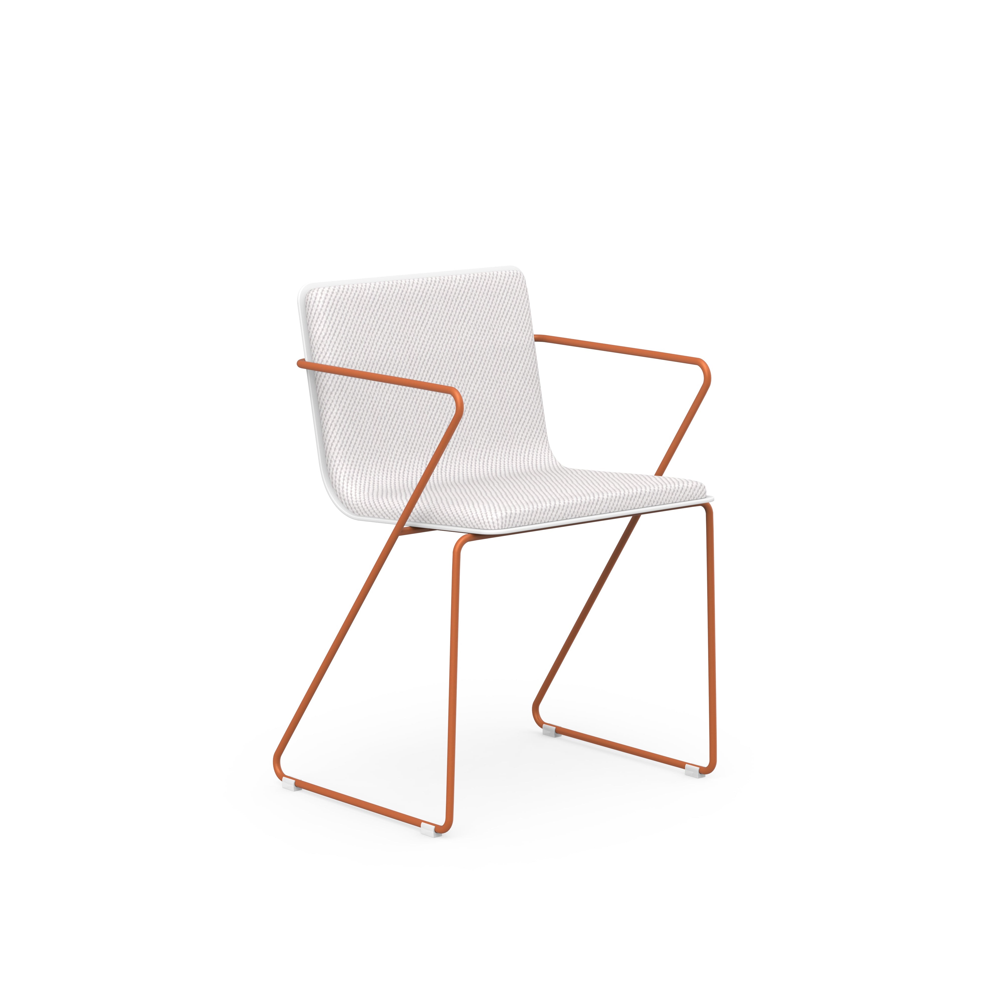 Das formale Konzept basiert auf der Herausforderung, seine Struktur als durchgehende Linie von Anfang bis Ende zu konzipieren. Um dieses leichte und elegante Erscheinungsbild zu erreichen, wurde das Rohrprofil der Struktur so fein wie möglich gestaltet, wodurch eine subtile, einfache Geometrie entstand. Dank seiner Widerstandsfähigkeit und Leichtigkeit eignet er sich ideal für Contract-Projekte (Restaurants, Hotels), den Einzelhandel und Büros, die zeitgemäße, architektonisch gestaltete Möbel suchen, die Vielseitigkeit im Raum garantieren.