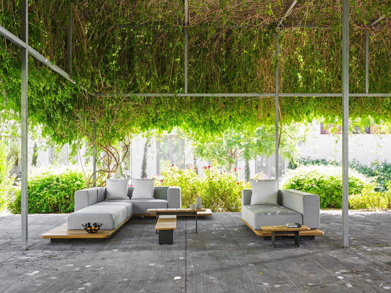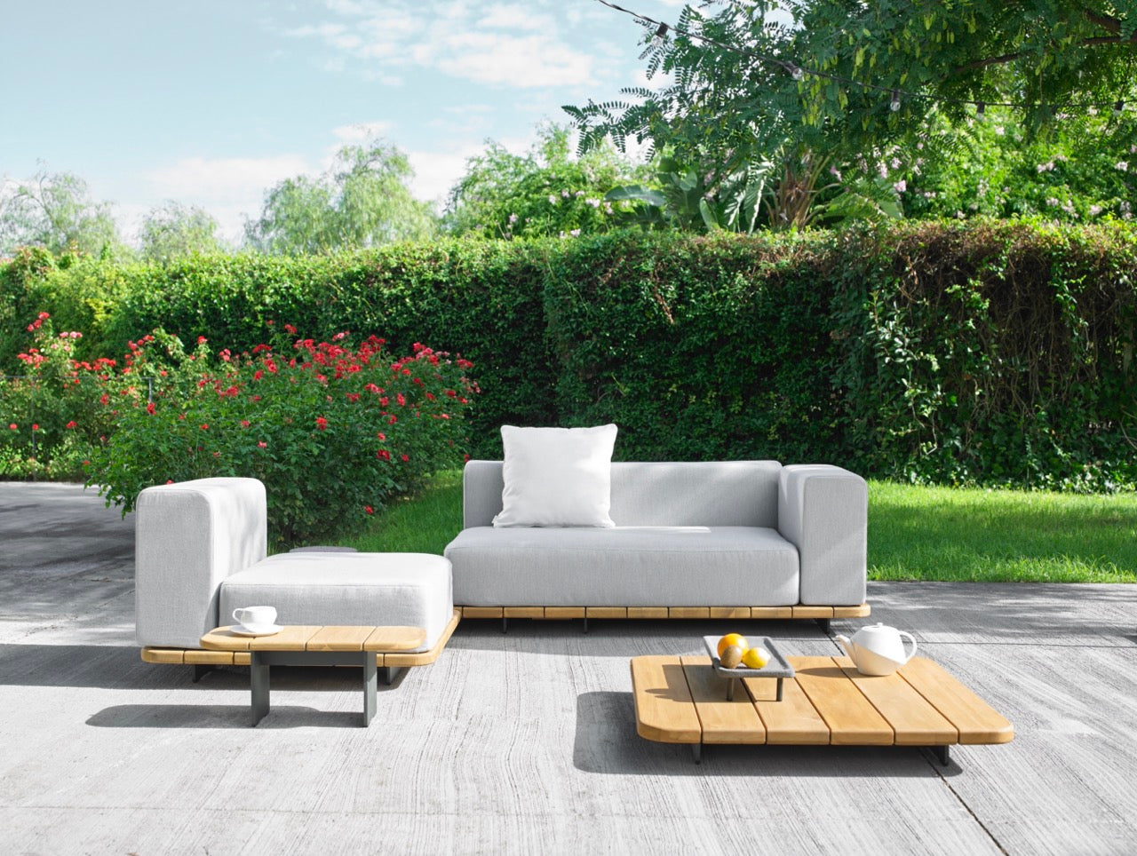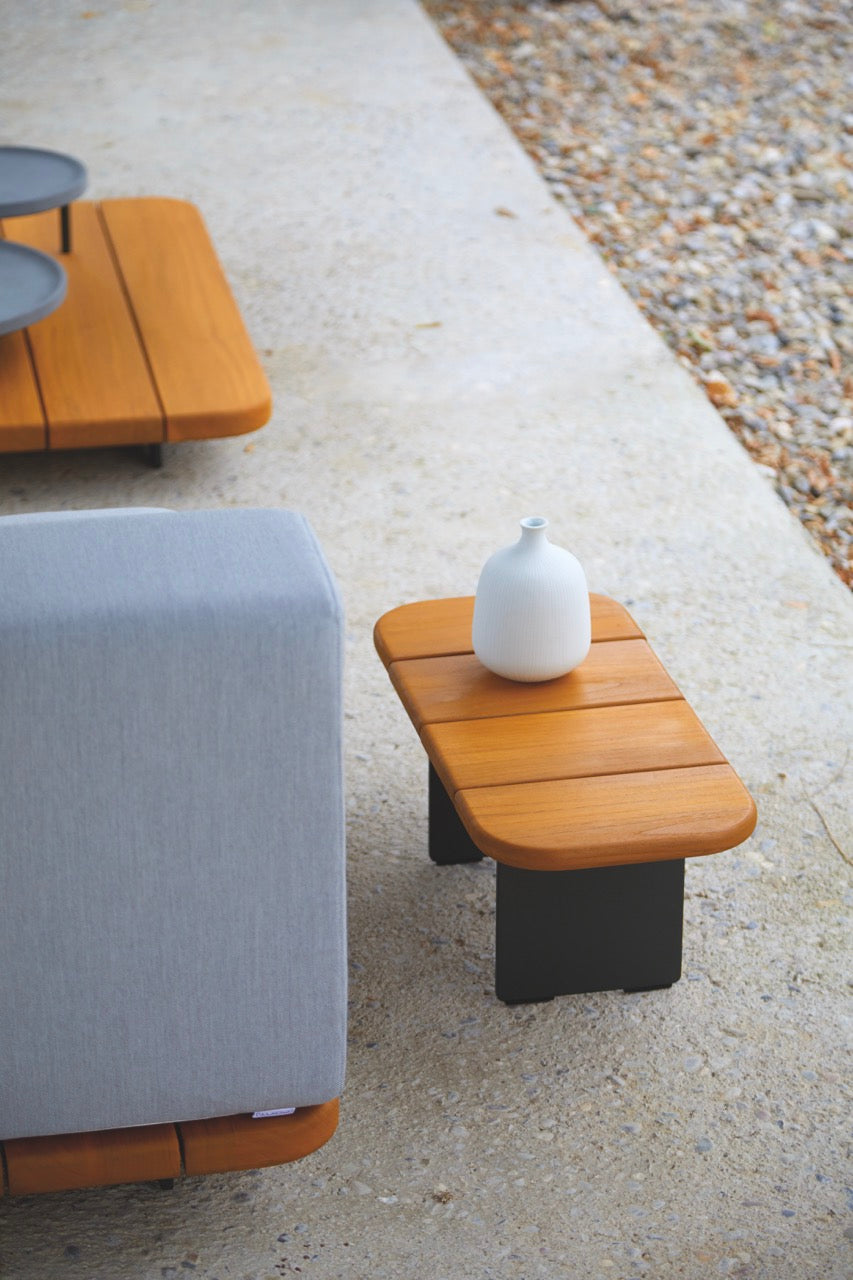Beistelltisch 61x28 cm. Aluminiumstruktur in Metallic Grey 56 epoxilackiert Abdeckung aus Teakholz aus Burma