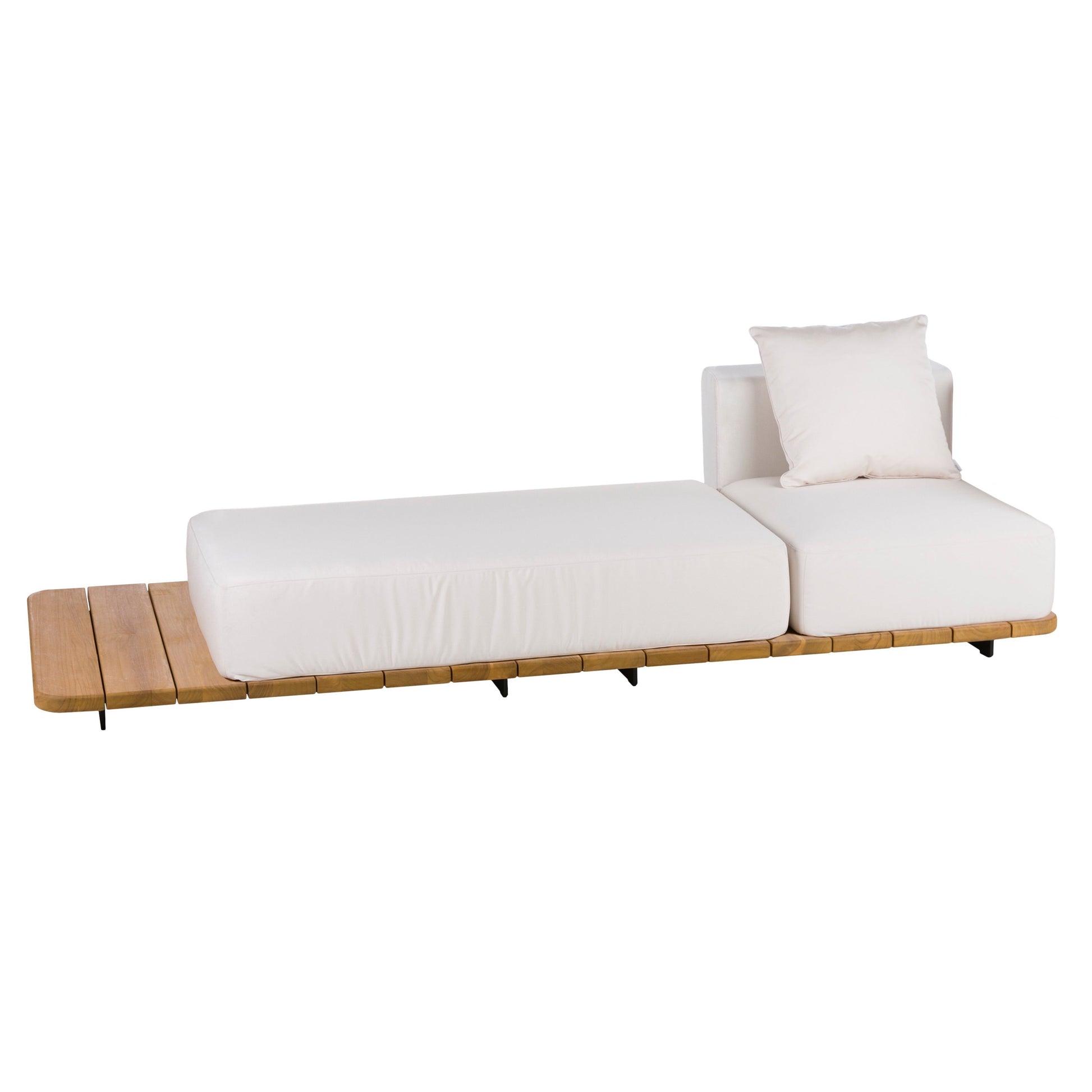 3 Sitzer Sofa Basis 246 x 92 aus Teakholz von Burma mit Beinen aus epoxylackiertem Aluminium Farbe Metallic Grey 56, Sitzkissen aus Schaumstoff von 35 kg. Mit undurchlässigem Innenbezug und Außenbezug mit Stoffen der Point Musterpalette. Sie können die Kissen auch ohne Stoff oder mit Ihrem eigenen Stoff kaufen.