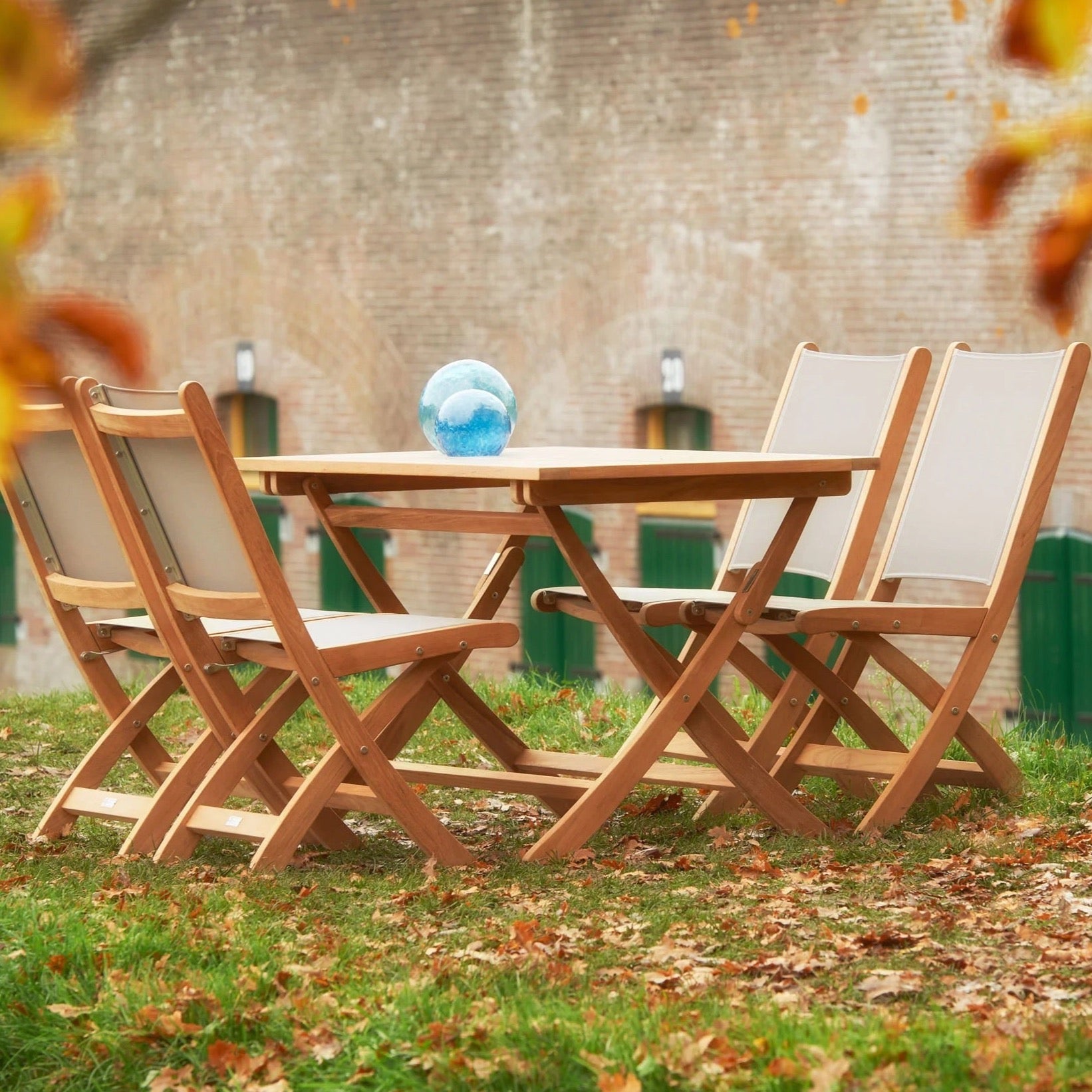 Der Klapptisch ALEXIA vereint edles Design und hochwertiges Teakholz zu einem praktischen Klapptisch. Mit seinem natürlichen Aussehen reflektiert der Tisch eine natürliche Umgebung und passt wunderbar auf Balkone und Terrassen.
