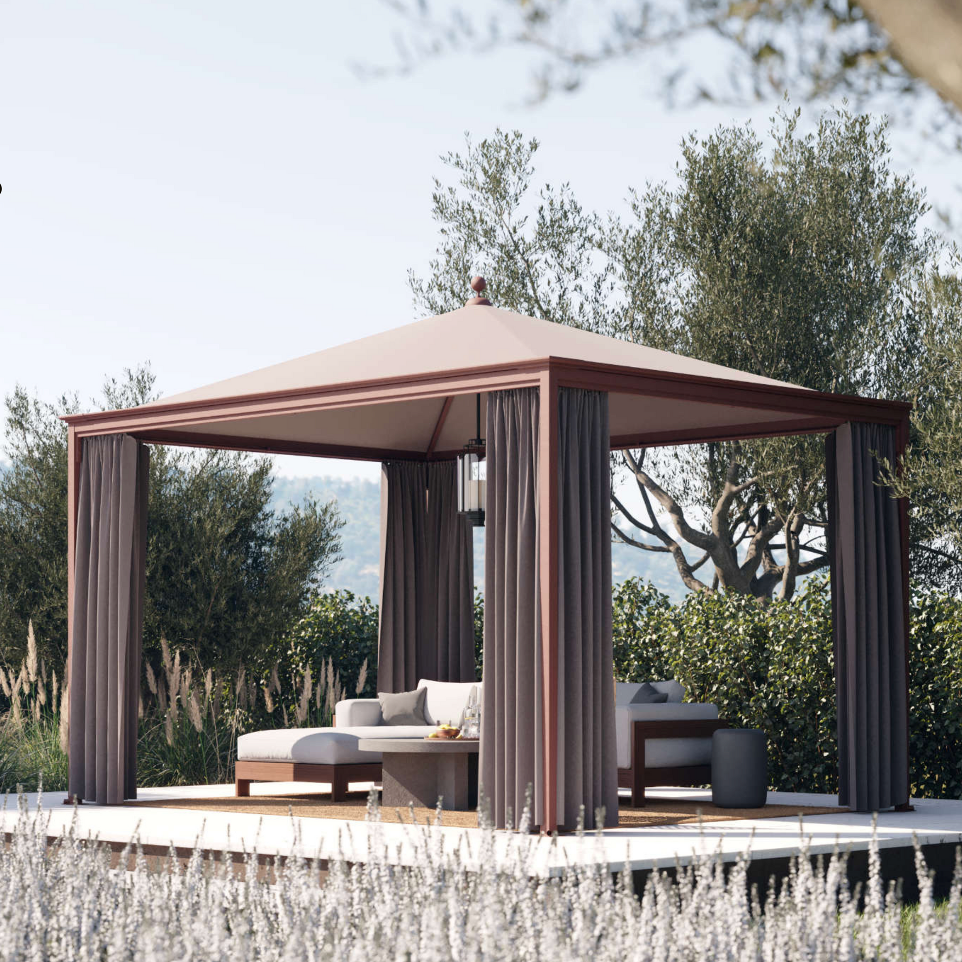 Dank seiner stilvollen Eleganz ist der Pavillon Ottomezzo besonders vielseitig einsetzbar und fügt sich sowohl in traditionellen, als auch moderneren Gärten ein.
