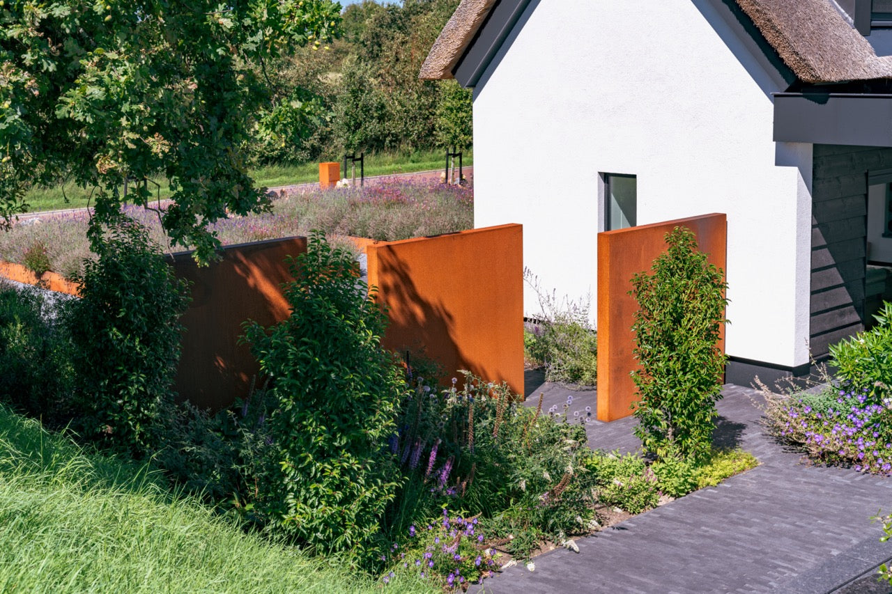 Die kräftige und in einem warmen Farbton gestaltete Wand aus Cortenstahl ist eine perfekte Ergänzung für jeden Garten. Die Wand schafft nämlich ein wenig mehr Struktur. Die Wand kann auch zur Schaffung einer windgeschützten Ecke oder für mehr Privatsphäre genutzt werden. Das hohle Design ermöglicht die einfache Montage von Zubehör, wie beispielsweise Beleuchtung. Achten Sie darauf, die Wand im Boden zu verankern.