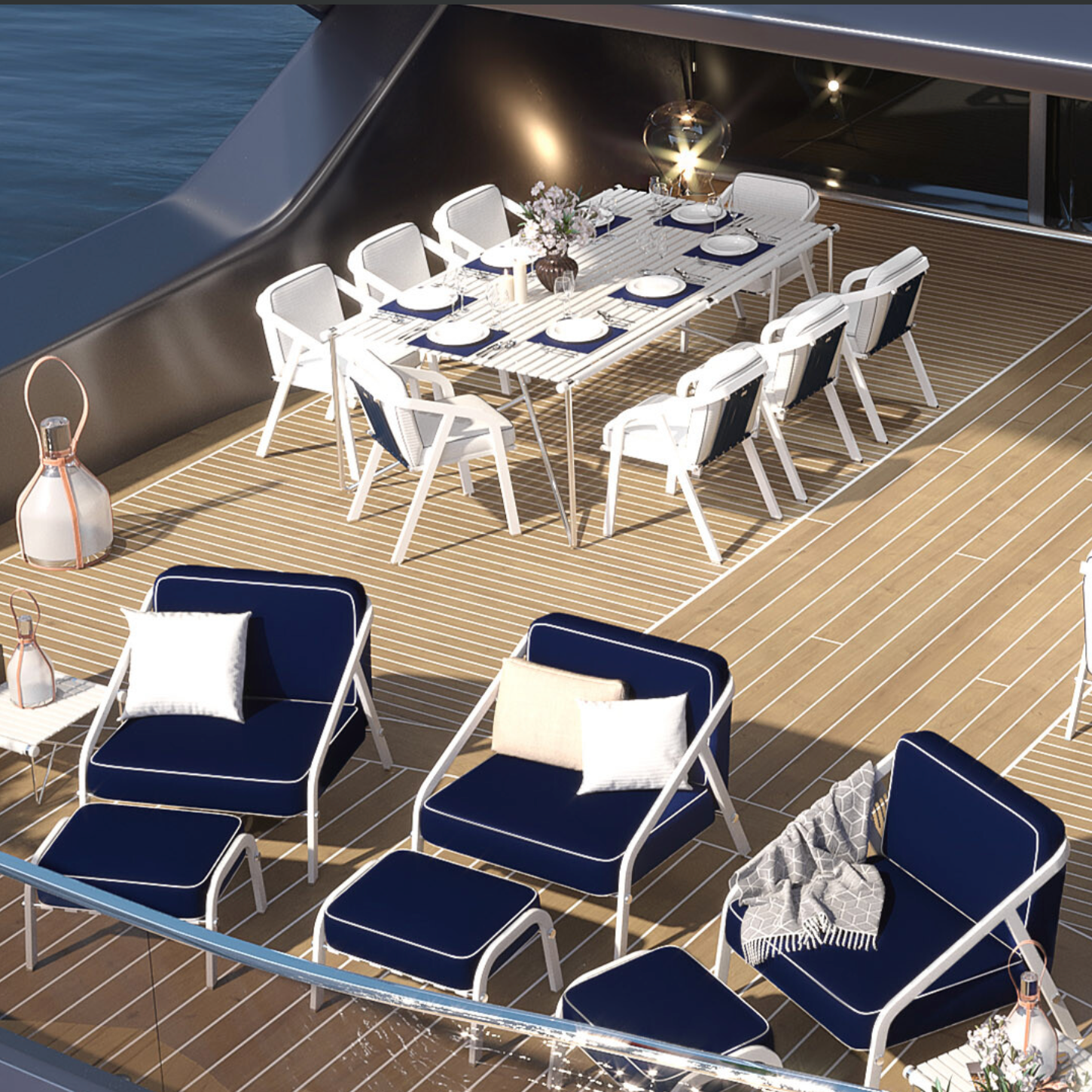 Unsere Möbelstücke bestehen aus hochwertigen Materialien wie wetterbeständigem Teakholz, langlebigem Aluminium und hochwertigem Kunststoffgeflecht, die den anspruchsvollen Anforderungen im Freien standhalten. Dank innovativer Designs und fortschrittlicher Technologien sind sie nicht nur ästhetisch ansprechend, sondern auch praktisch und pflegeleicht.