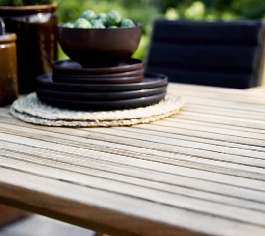Wenn Sie das feine Teakholz schützen und die ursprüngliche, einzigartige goldbraune Teakfarbe beibehalten möchten, empfehlen wir Teak Care-Produkte von Cane-line, die die Pflege Ihrer Teakholzmöbel gewährleisten.
