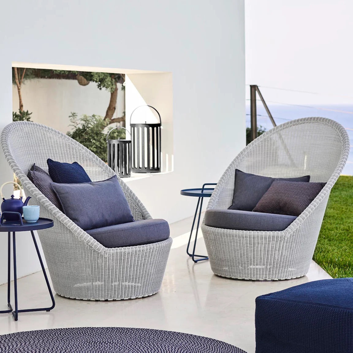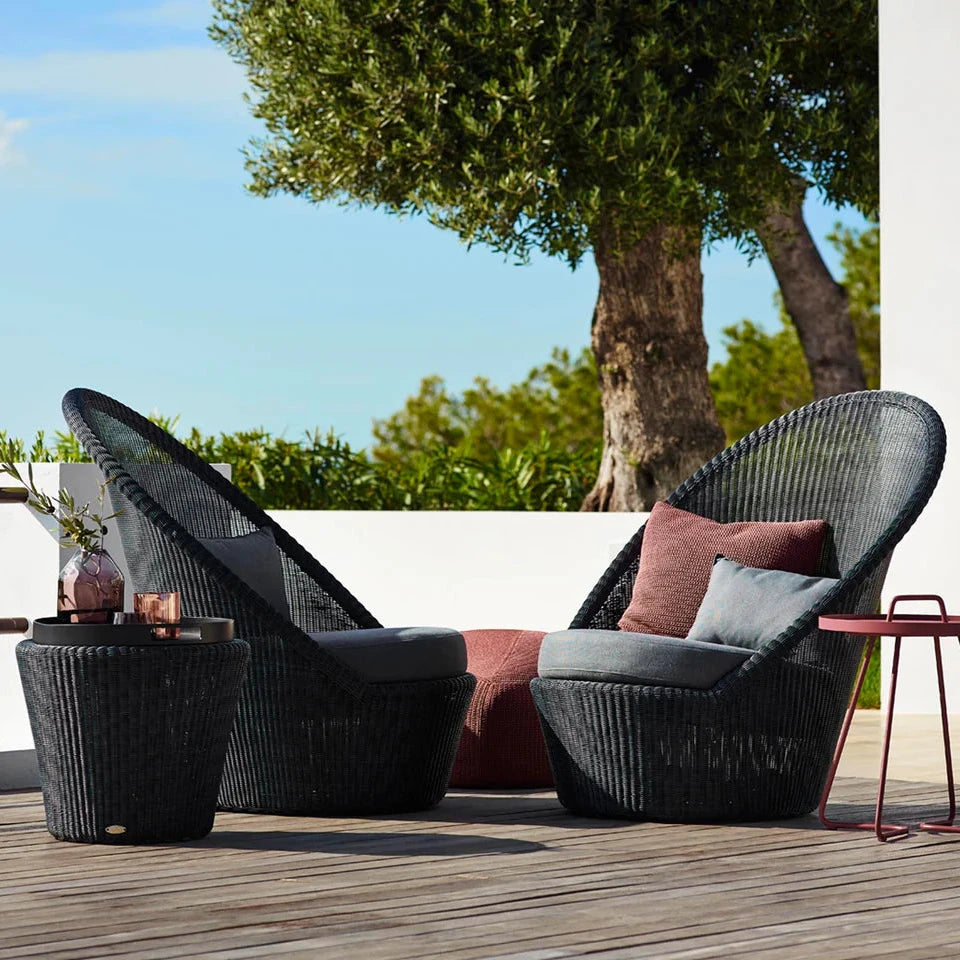 Der Kingston Sunchair verheißt ein einmaliges Sitzerlebnis. Er bietet höchsten Komfort, der sich durch Kombination mit dem Hocker noch steigern lässt. Schalten Sie einfach ab und genießen Sie Stunden reinster Entspannung. Das i-Tüpfelchen ist die elegante, geflochtene Rückenlehne. Der transparente Look macht höchste Präzision in unserer Produktion erforderlich, damit es keine Unregelmäßigkeiten im Geflecht gibt, die durch das durchscheinende Sonnenlicht sichtbar werden. Kombinieren Sie den Kingston Sunchair mit Kissen Ihrer Wahl im Menü rechts. Der tolle Sunchair ist aus der witterungsbeständigen und pflegeleichten Cane-line Faser hergestellt und kann das ganze Jahr über draussen stehen bleiben. Der ursprüngliche Sunchair wurde vor ein paar Jahren mit Rollen versehen, welches ihn nur noch praktischer und beliebter gemacht hat. Der Kingston Sunchair wurde von den bekannten dänischen Möbeldesigner Foersom & Hiort-Lorenzen MDD entworfen.