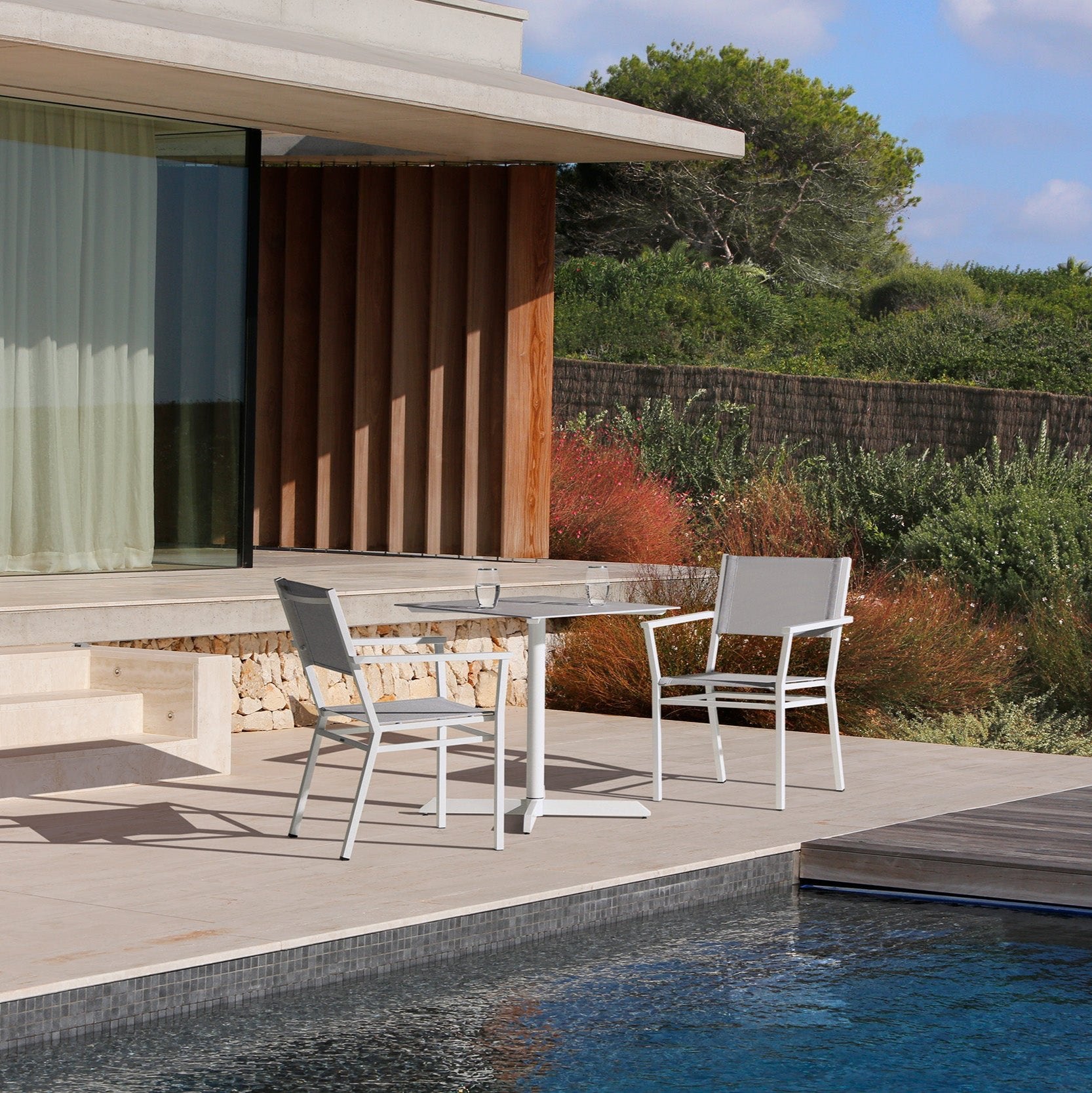 Der Equinox Stuhl pulverbeschichtet steht für modernes Design und Langlebigkeit. Hergestellt aus Edelstahl 316, trotzt er Wind und Wetter, während die Textilene-Bespannung für besten Sitzkomfort sorgt – ganz ohne zusätzliche Polsterung. Ideal für Terrassen, Esszimmer oder elegante Außenbereiche, lässt sich der Stuhl stapeln und platzsparend verstauen. Wählen Sie aus Farben wie Pearl, Titanium, Platinum oder Charcoal für den perfekten Look.