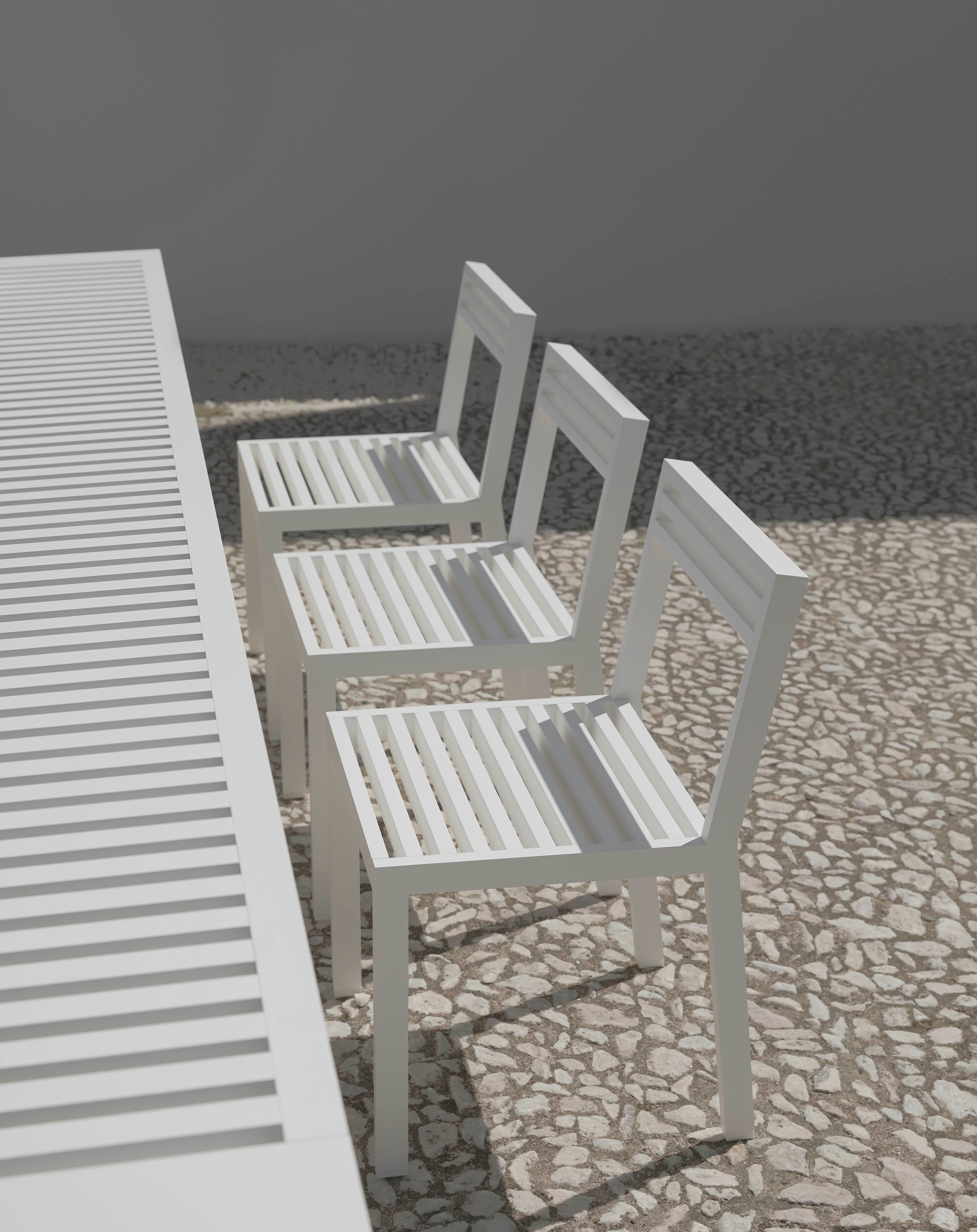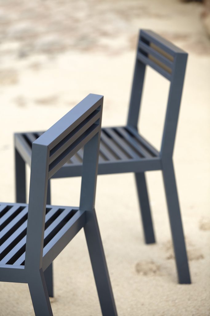 DNA ist eine Outdoor-Möbelkollektion, die von mediterranen Fensterläden und orientalischer Architektur inspiriert ist und komplett aus Aluminium, der DNA von GANDIABLASCO, entworfen wurde, damit Sie Ihre Außenbereiche 365 Tage im Jahr genießen können.