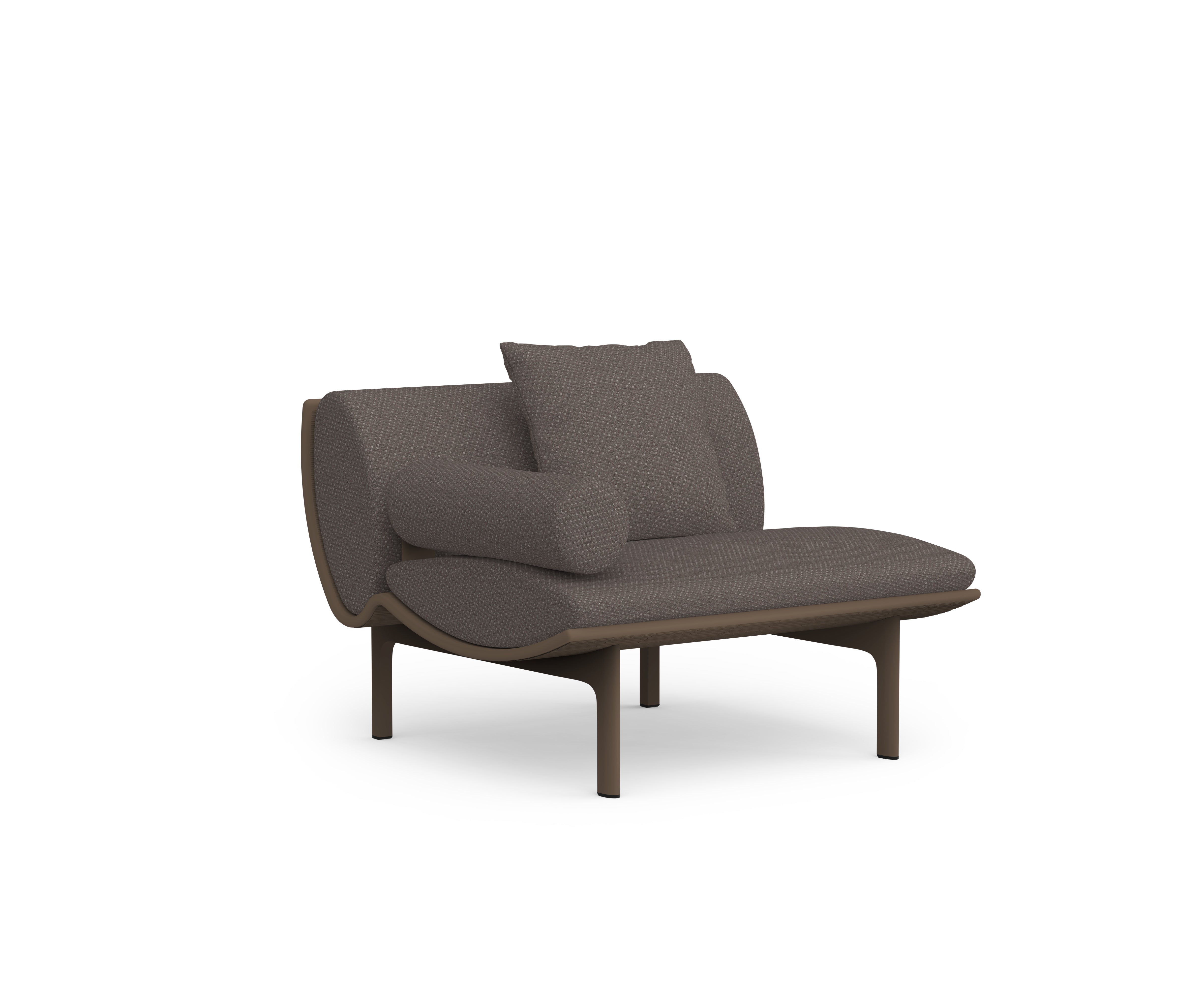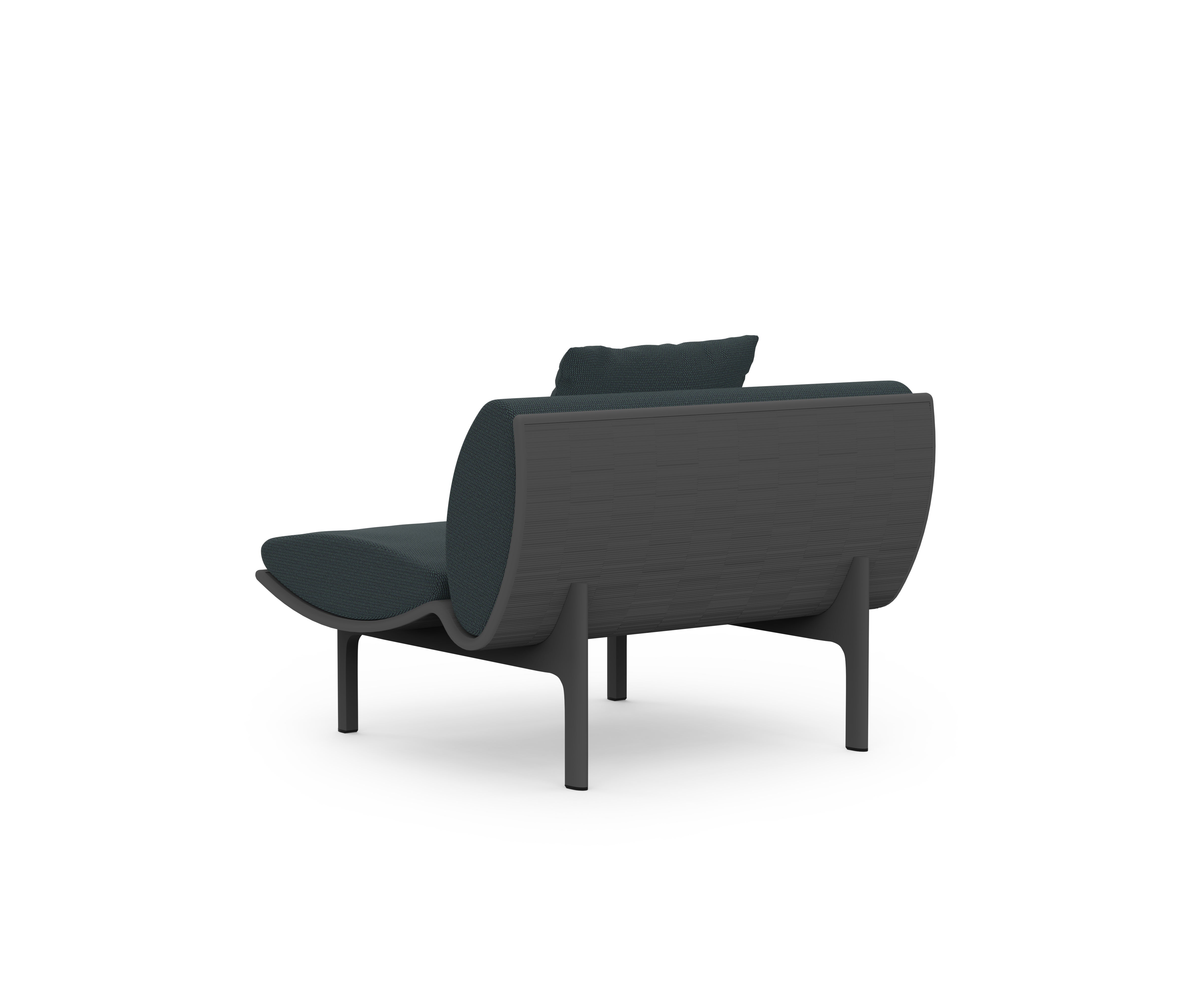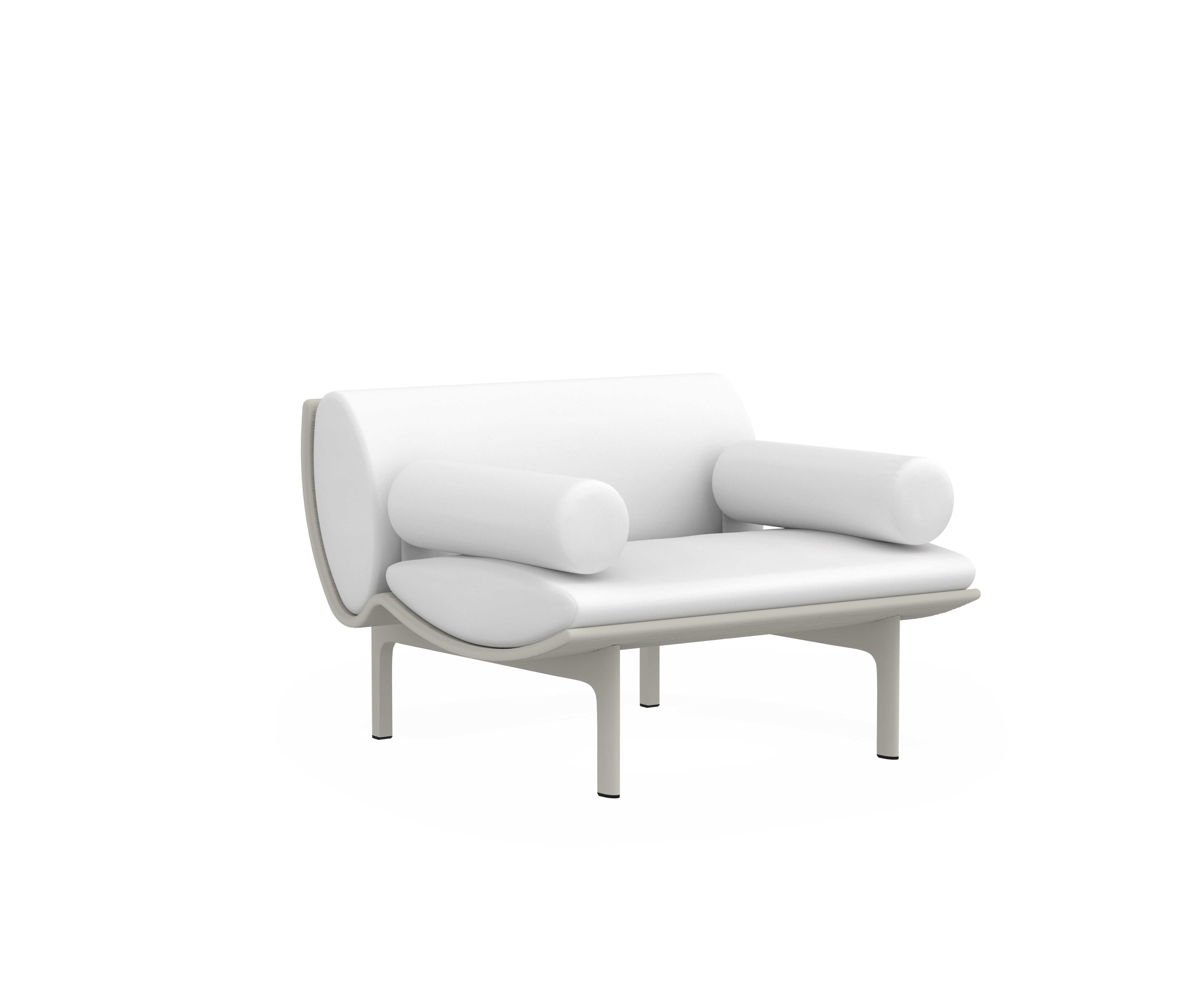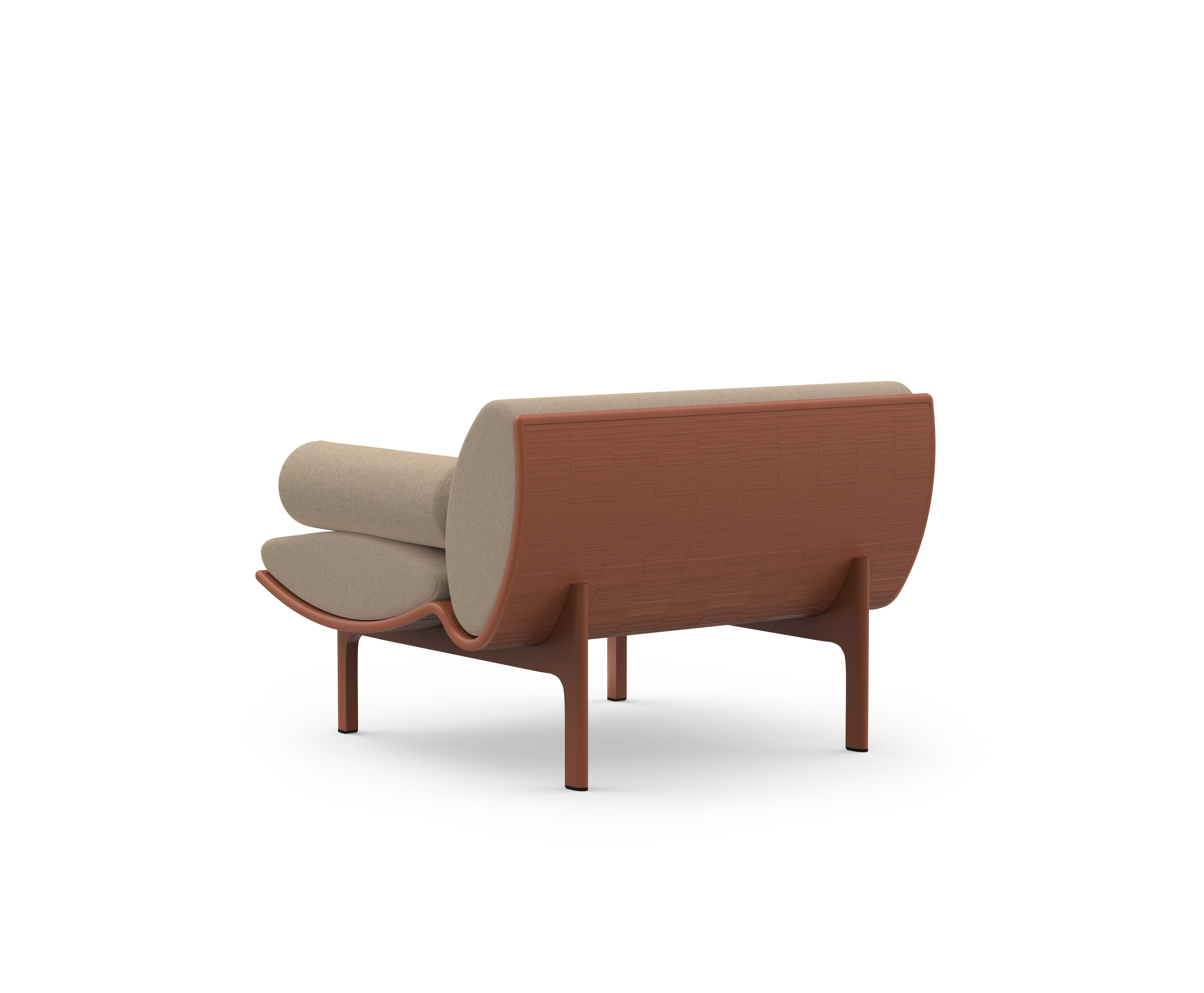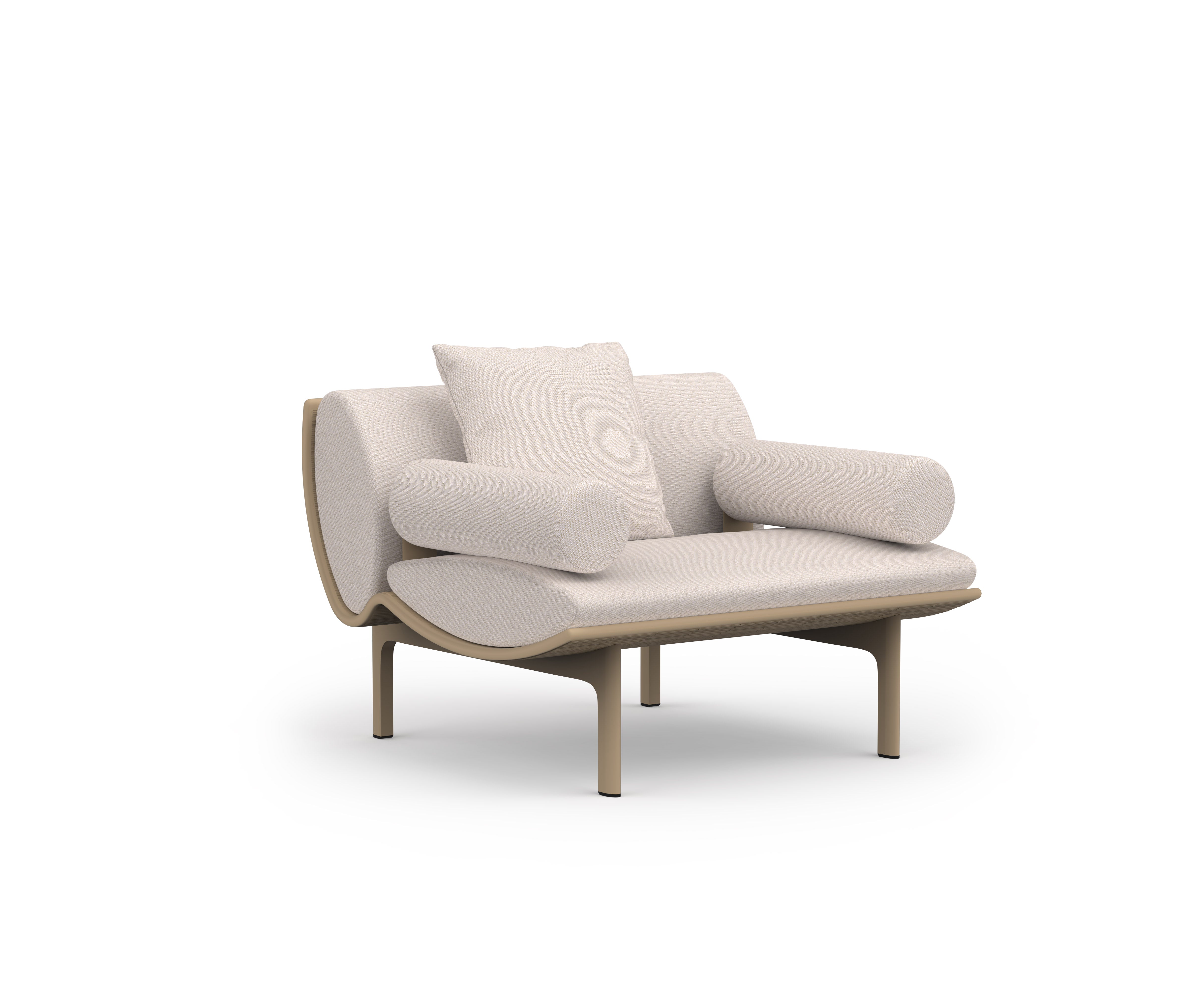 Der von Nao Tamura für GANDIABLASCO entworfene Loungesessel EL DUNNE vermittelt die raue Textur von Sand, indem er die Krümmung der Dünen nachbildet; nachhaltige Materialien – 100 % recycelbares Aluminium – mit Komfort in Einklang bringt und seine Integration in Innen- und Außenräume berücksichtigt. Die Kombination aus extrudierten, montierten und handgeschweißten Teilen spiegelt die Beherrschung semi-industrieller Prozesse wider und vermittelt ein Gefühl von Leichtigkeit und mühelosem Design.