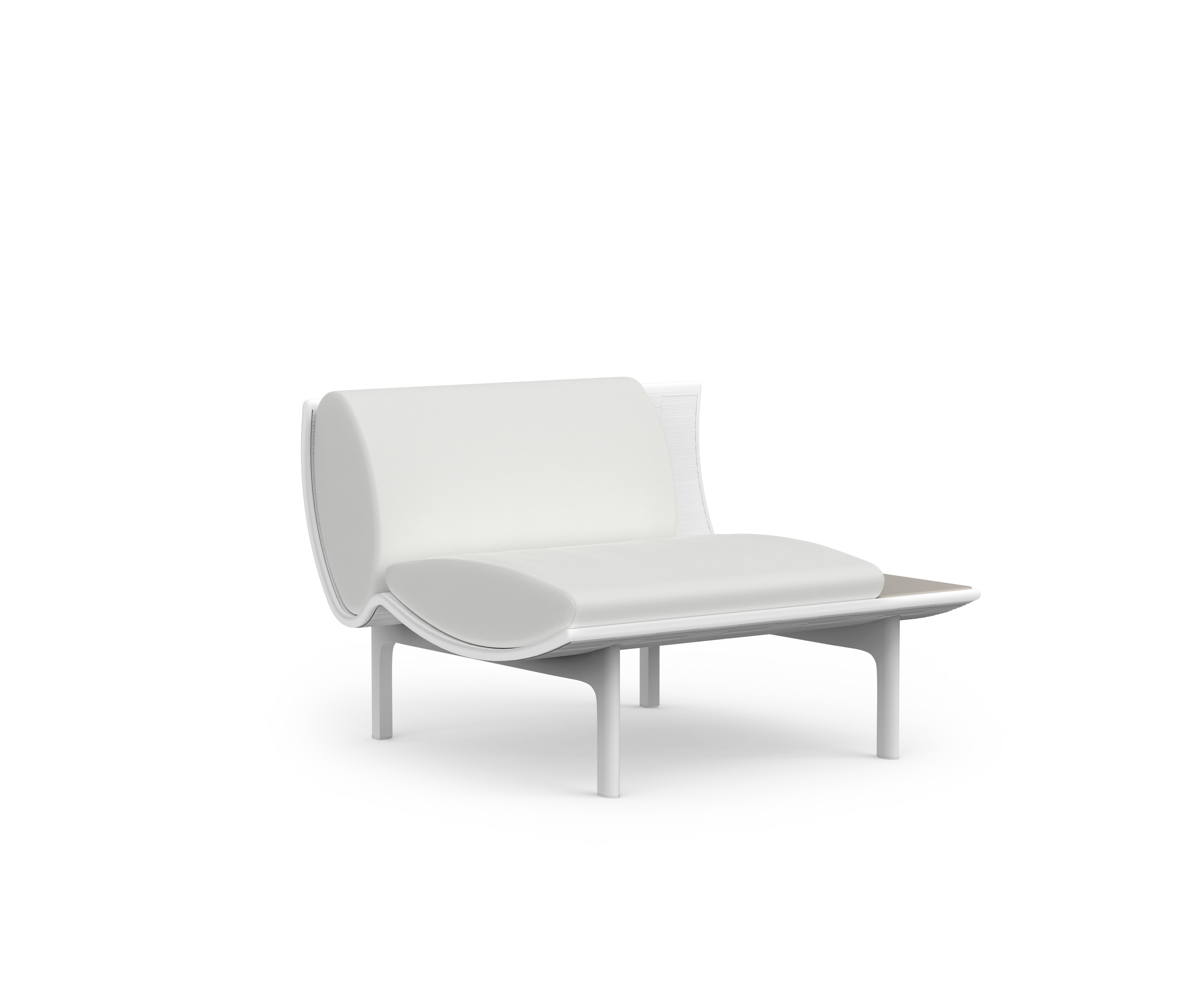 Dieser Designer-Lounge-Sessel, der ohne Armlehnen, mit eleganten Armlehnen oder mit einem praktischen Beistelltisch aus Beton erhältlich ist, definiert das Konzept von Komfort neu. Seine hochwertige Polsterung und Kissen bieten dank ihrer Füllung aus Polyurethanschaum und Polyesterfasern außergewöhnlichen Komfort und sind mit einem technischen Gewebe mit wasserabweisender Behandlung bezogen.