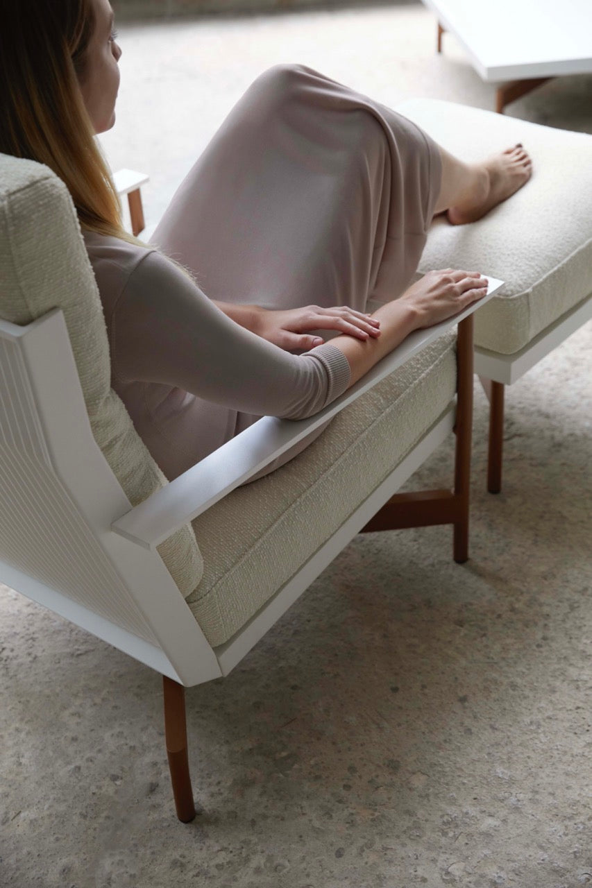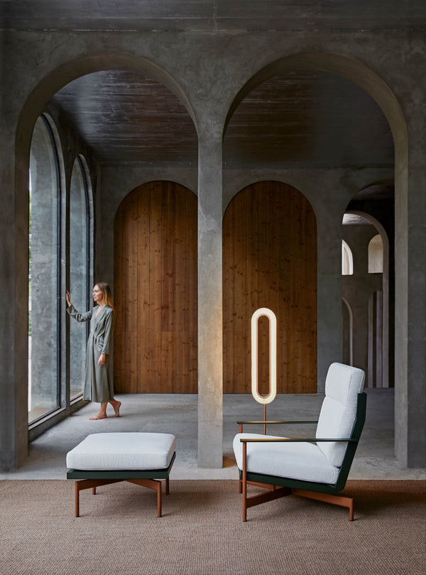 Der ONDE Hocker für Clubsessel ist ein exklusives Design von Luca Nichetto für GANDIABLASCO.