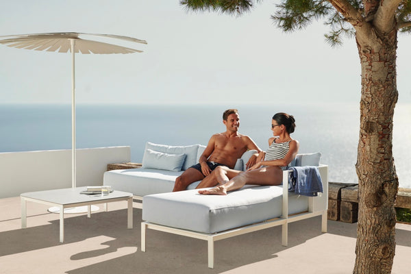 Die sanften Kurven und die sorgfältig durchdachten Details vermitteln Wärme und eignen sich sowohl für Außenbereiche, Privatwohnungen, Hotels und andere Projekte im Objektbereich als auch für Innenräume. Sie können die Chaiselongue mit einer breiten Palette von Farben und Outdoor-Textilien individuell gestalten.