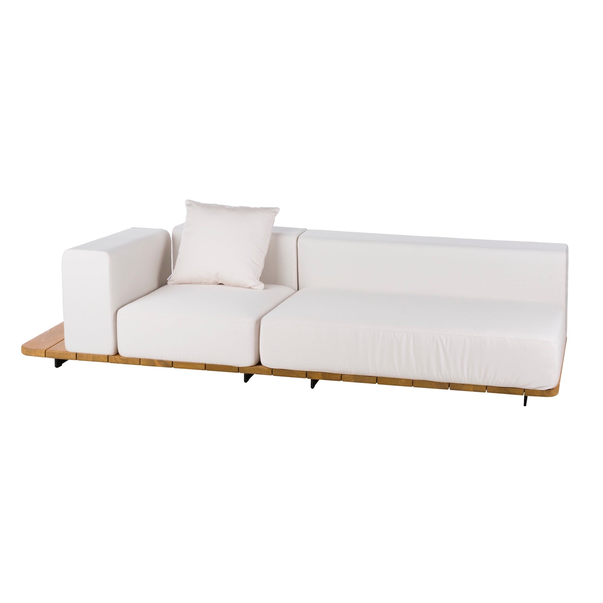 3 Sitzer Sofa Basis 246 x 92 aus Teakholz von Burma mit Beinen aus epoxylackiertem Aluminium Farbe Metallic Grey 56, Sitzkissen aus Schaumstoff von 35 kg. Mit undurchlässigem Innenbezug und Außenbezug mit Stoffen der Point Musterpalette. Sie können die Kissen auch ohne Stoff oder mit Ihrem eigenen Stoff kaufen.