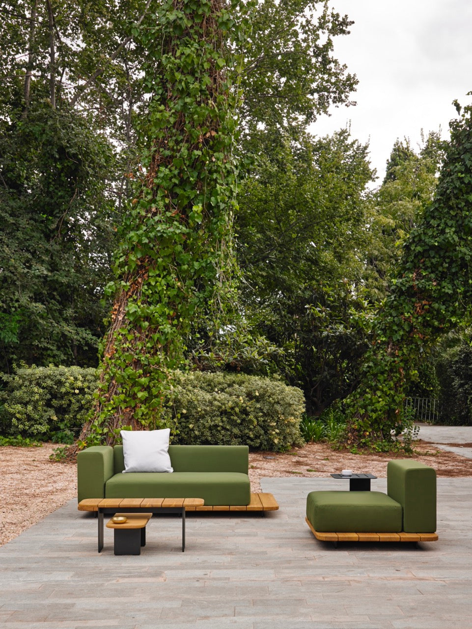 2 Sitzer Sofa Basis 184 x 92 aus Teakholz von Burma mit Beinen aus epoxylackiertem Aluminium Farbe Metallic Grey 56, Sitzkissen aus Schaumstoff von 35 kg. Mit undurchlässigem Innenbezug und Außenbezug mit Stoffen der Point Musterpalette. Sie können die Kissen auch ohne Stoff oder mit Ihrem eigenen Stoff kaufen.
