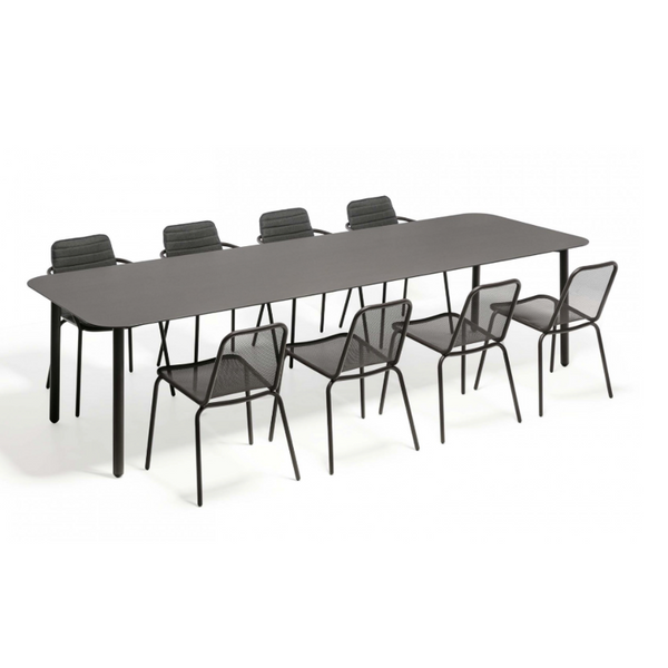 Die Starling-Kollektion verkörpert eine Mischung aus Ästhetik, Einfachheit und Komfort. Studio Segers hat eine kompakte und dennoch vielseitige Kollektion entworfen, die eine Reihe von Produkten für verschiedene Zwecke umfasst. Die Produkte zeichnen sich durch ihre präzisen Linien aus, die aus gebogenem, pulverbeschichtetem Edelstahl gefertigt sind. Alle Schweißnähte und nahtlosen Verbindungen zwischen dem Gewebe und dem Rahmen sind geschickt verdeckt, so dass sie kaum wahrnehmbar sind. Die subtile Rahmung aller Elemente der Starling-Kollektion verleiht der Kollektion ein Gefühl von Leichtigkeit.
