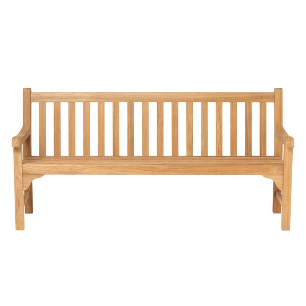 Die aus hochwertigem Teakholz gefertigte Bank hat ein gerades Rückenelement, bei dem der Querbalken nahtlos in die vertikalen Leisten übergeht. Durch die leicht nach hinten geneigte Sitzfläche haben Sie optimalen Sitzkomfort.