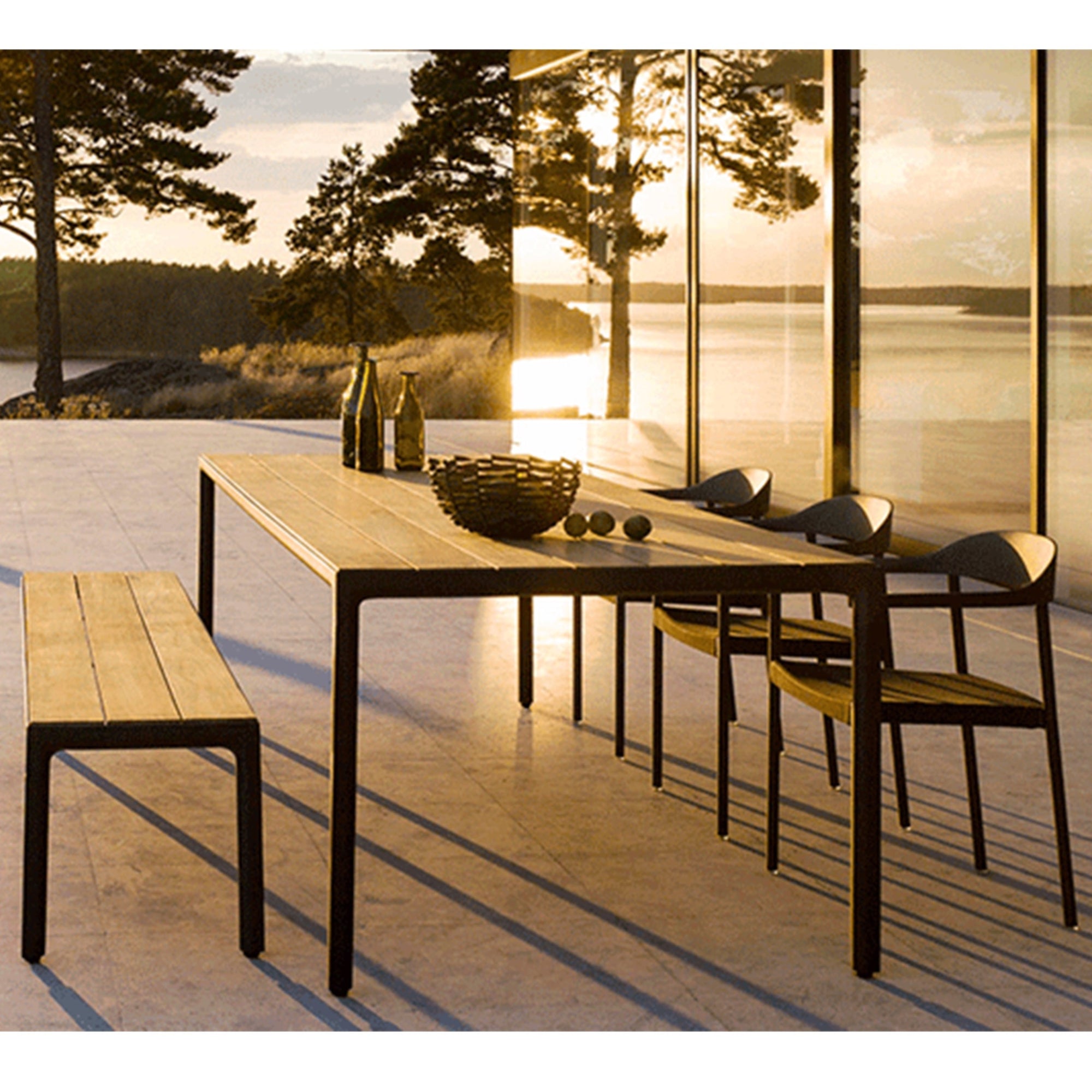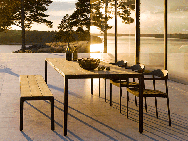 Die Illum Bank mit schlanken Beinen ist sehr schlicht gehalten. Der Rahmen dieser Bank ist aus pulverbeschichtetem Aluminium. Für der Sitz Tribù verarbeitet nur Teakholz allerbester Qualität, welches mit einem A-Label ausgezeichnet wurde und welches auf indonesischen Plantagen nachhaltig angebaut wurde.