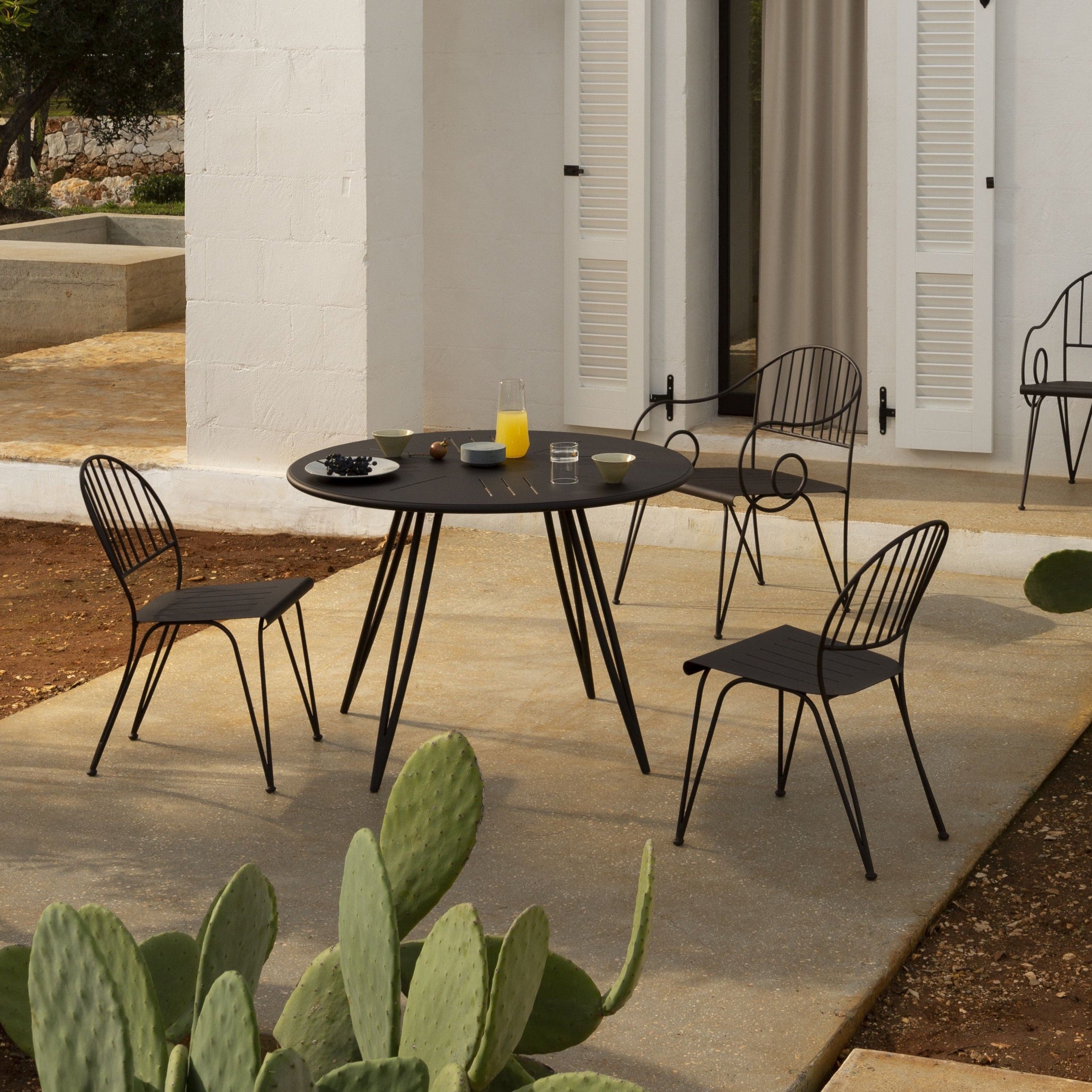 Ariete- entworfen von Adam D. Tihany unterstreicht die primäre Geometrie des Kreises als unverwechselbares Merkmal, um im zeitgenössischen Stil Verarbeitungen aus Schmiedeeisen neu zu interpretieren. Die großzügig proportionierte Kollektion wird von fachkundigen Spezialisten von Hand gefertigt und umfasst Sofas, Sessel, Tische und Stühle, die sich optimal dazu eignen, Räume zeitlos elegant einzurichten. Das typische Lockenmotiv wird erweitert und in ein Kreisdekor eingefasst, wodurch ihm sowohl eine dekorative Funktion als auch ein struktureller Zweck verliehen wird und das Mobiliar mit Anmut, Funktionalität und Frische veredelt.
