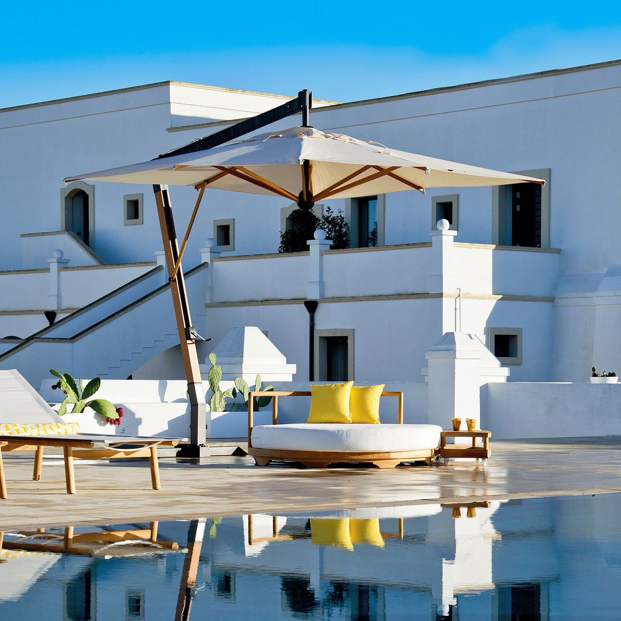 Hotels und Yachten. Alle Kreationen von Unopiù sind dank der Auswahl von hochwertigen Materialien von unvergleichlicher Qualität, die allen Witterungseinflüssen standhalten.