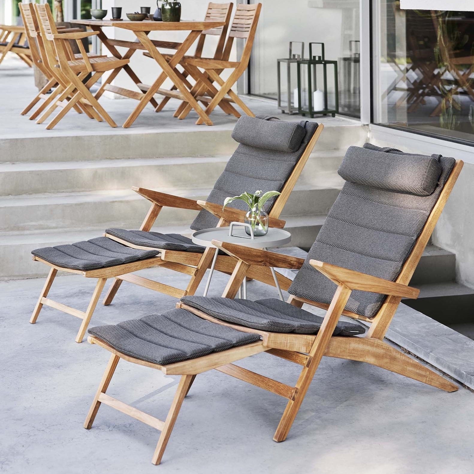 The Flip deck chair is a wonderful addition to the Flip series, designed by the Danish designer couple Strand+Hvass. Flip is made from high quality Grade A teak, which gives the chair a beautiful warm tone. The varying slats are an eye-catching design detail that creates a stylish and lively expression. It also has some practical features, such as an adjustable backrest and an integrated footstool that can be pushed under the seat when not in use. For even more comfort, a matching pillow set with neck support is also available.