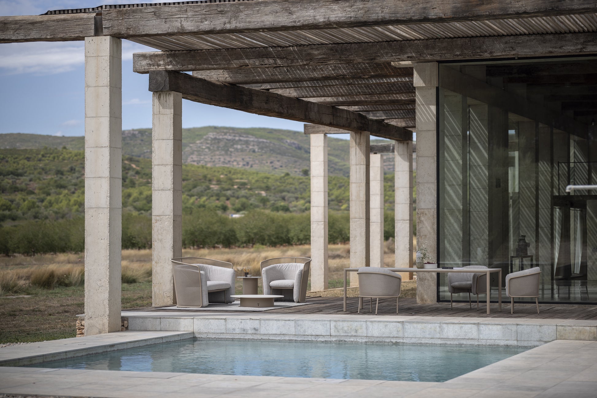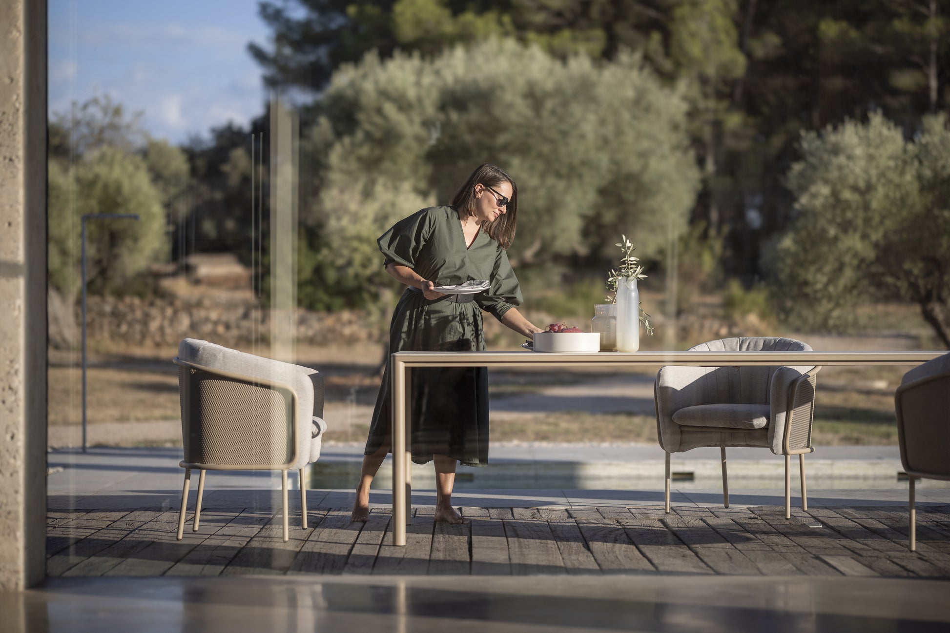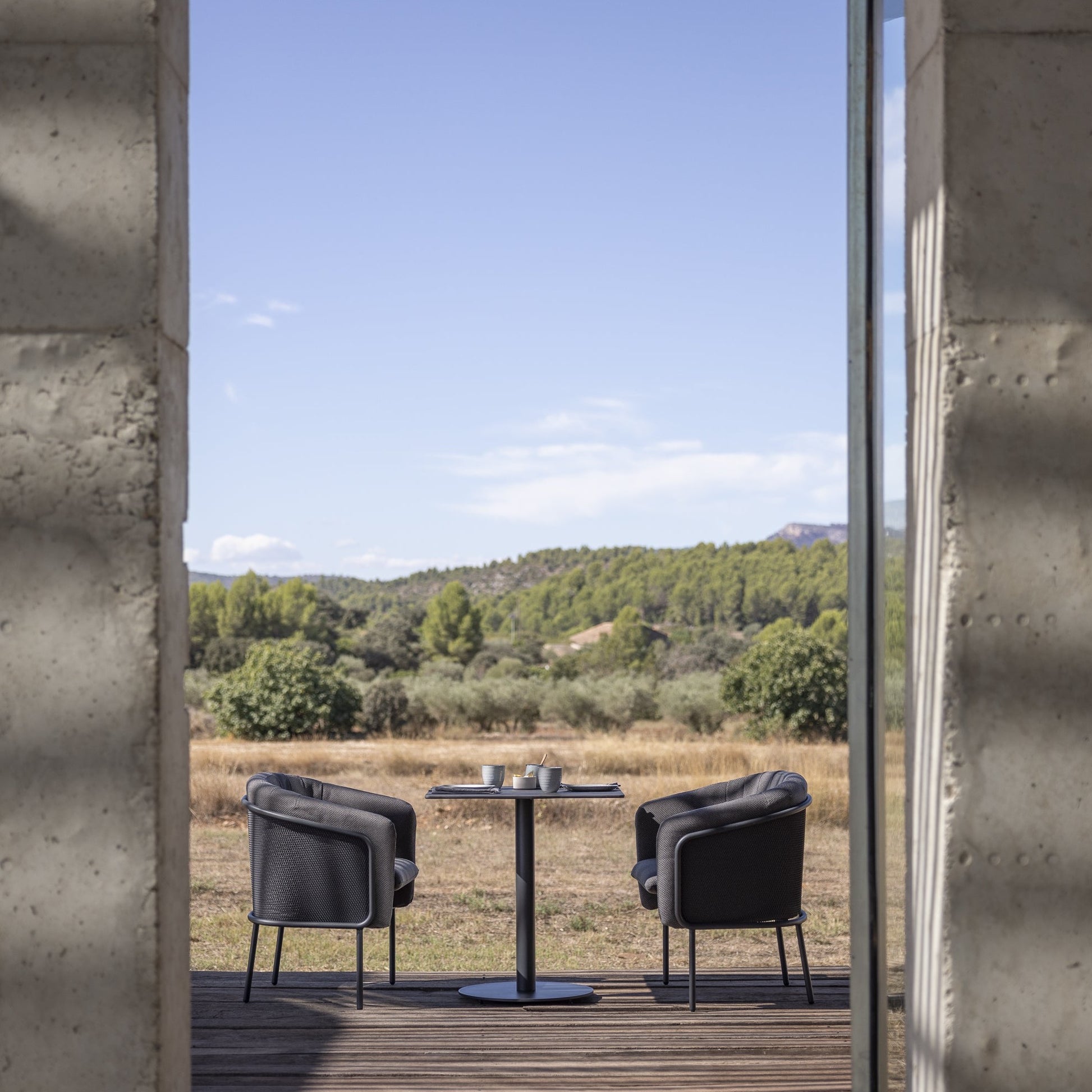 Lucie Koldová's Slide collection consists of three seating elements - an armchair, a club chair and a two-seater sofa. The frame of all elements is made of powder-coated stainless steel in combination with very comfortable padding made of Dryfeel foam and high-quality outdoor fabric.