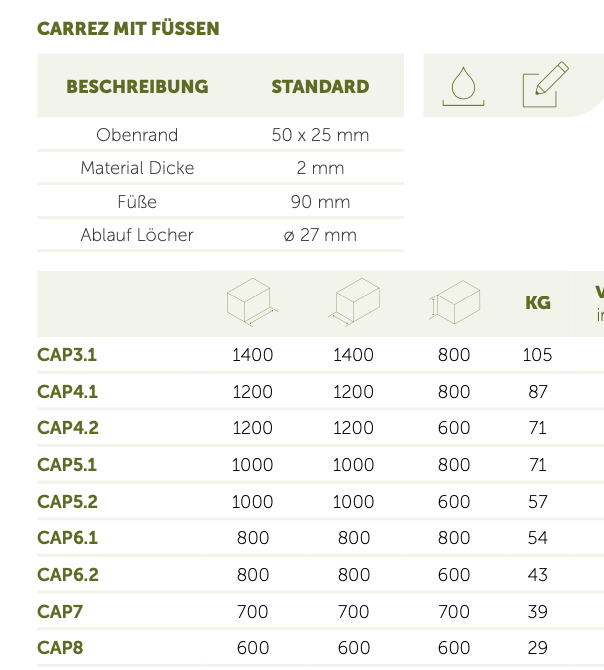 Ablauflöcher: Ø 27 mm