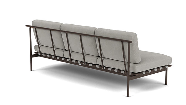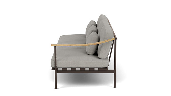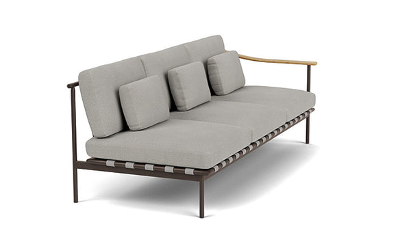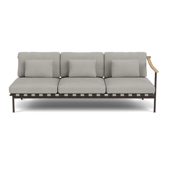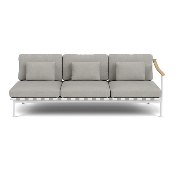 Verleihen Sie Ihrem Außenbereich einen Hauch von Eleganz mit dem Around Deep Seating Dreisitzer von Barlow Tyrie. Dieser Designer-Dreisitzer kombiniert modernen Komfort mit natürlichen Materialien. Die luxuriösen Kissen bieten höchsten Sitzkomfort, während der pulverbeschichtete Aluminiumrahmen und die Teakholzarmlehnen für eine außergewöhnliche Haltbarkeit und eine edle Optik sorgen. Der modulare Aufbau lässt sich perfekt an Ihre Bedürfnisse anpassen – ob als Einzelstück oder in Kombination mit anderen Around-Möbeln.
