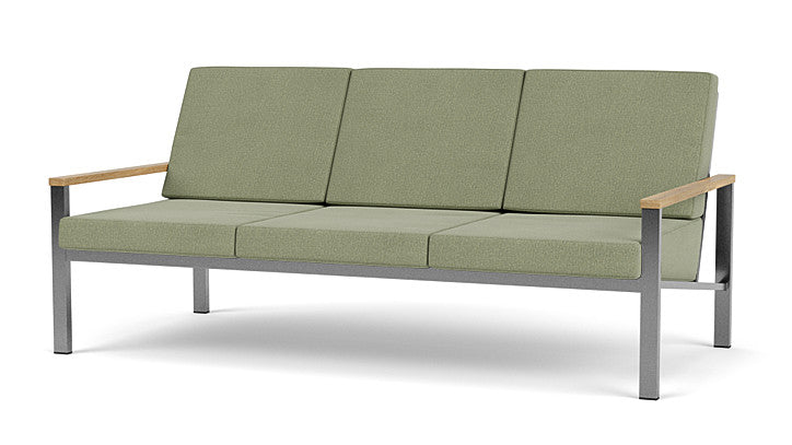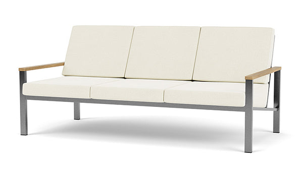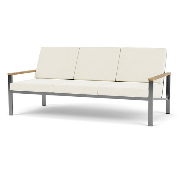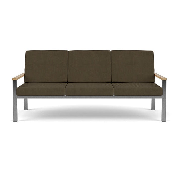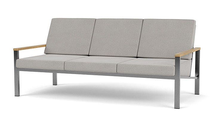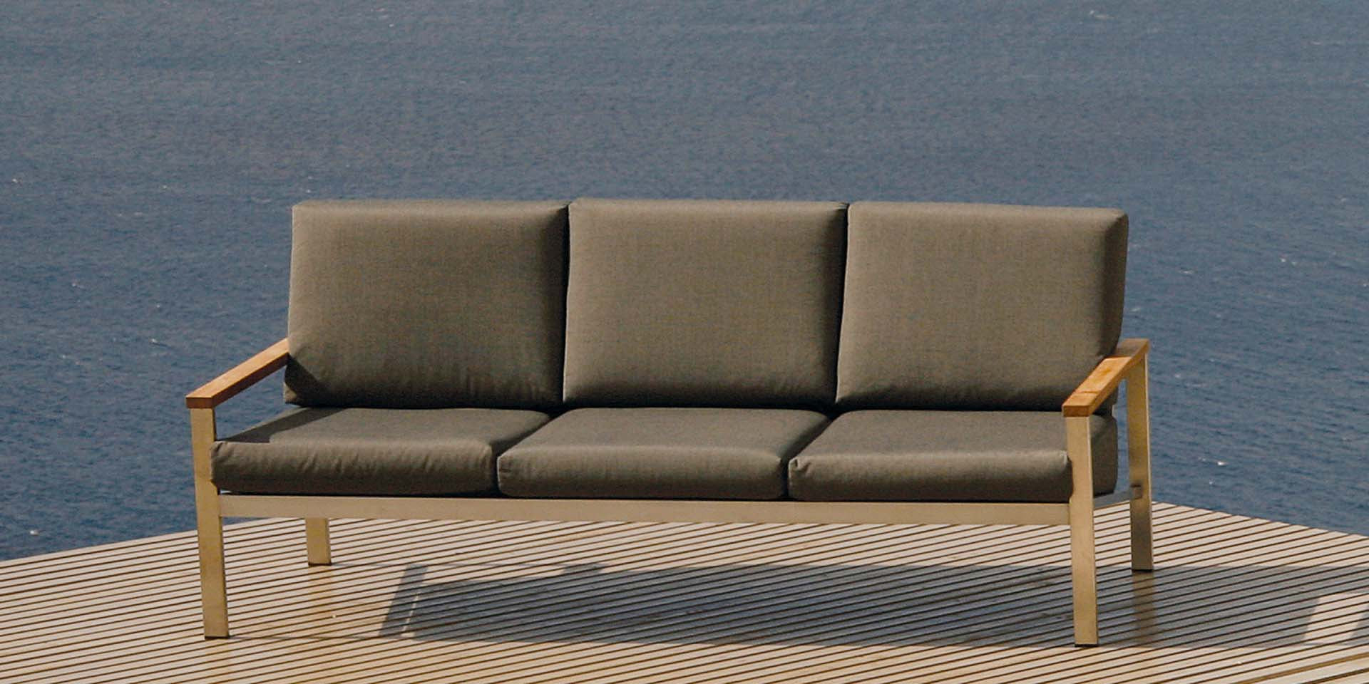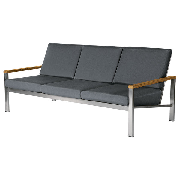 Das Equinox Lounge Sofa vereint außergewöhnliches Design mit überragender Funktionalität. Hergestellt aus robustem Marine-Edelstahl und edlen Teakholz-Elementen, ist dieses Dreisitzer-Sofa ein langlebiger Begleiter für stilvolle Außenbereiche. Die Sunbrella-Polster in Anthrazit bieten Komfort und Schutz vor Witterungseinflüssen. Mit seiner großzügigen Breite von 202 cm und einer bequemen Sitzhöhe von 45 cm schafft es die perfekte Balance zwischen Eleganz und Entspannung.