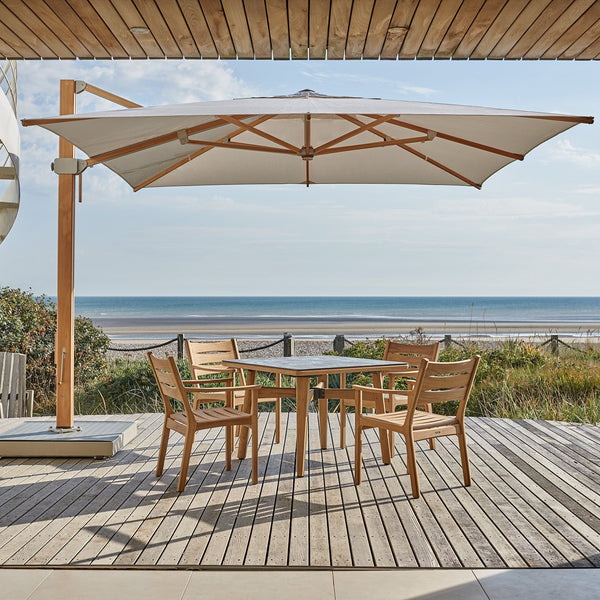 Der Napoli Cantilever Sonnenschirm von Barlow Tyrie vereint Eleganz und Funktionalität. Sein robustes Schirmdach (350 cm x 350 cm)spendet großzügigen Schatten, während das edle Gestell aus Eukalyptus, Marine-Grade-Edelstahl und pulverbeschichtetem Aluminium für Stabilität sorgt. Perfekt für Garten, Terrasse oder Poolbereich – mit 360°-Drehung und Neigefunktion für flexiblen Schatten. Inkl. Abdeckung für Schutz bei Nichtgebrauch.