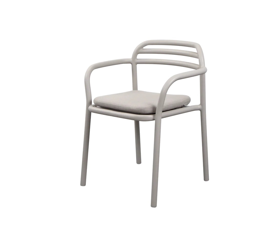Der Bliss Stuhl entworfen von Foersom & Hiort-Lorenzen MDD bringt eine Note skandinavischer Schlichtheit in Ihren Außenbereich und vereint modernes Design mit praktischer Funktionalität. Der Stuhl besteht aus leichtem, pulverbeschichtetem Aluminium und kann wechselnden Wetterbedingungen standhalten, und fordert gleichzeitig nur einen minimalen Wartungsaufwand. Der Bliss-Stuhl ist in verschiedenen Farben erhältlich, so können Sie sich die Variante aussuchen, die optimal zu Ihrer Außendekoration passt. Dank des stapelbaren Designs ist der Stuhl eine funktionale und stilvolle Wahl für Ihren Außenbereich, und mit dem optionalen weichen Sitzkissen bietet der Stuhl noch mehr Komfort.