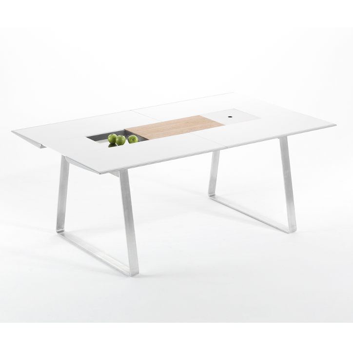Ego Paris Esstisch Extrados 180 in weiß mit holzfarbenen Tischläufer
