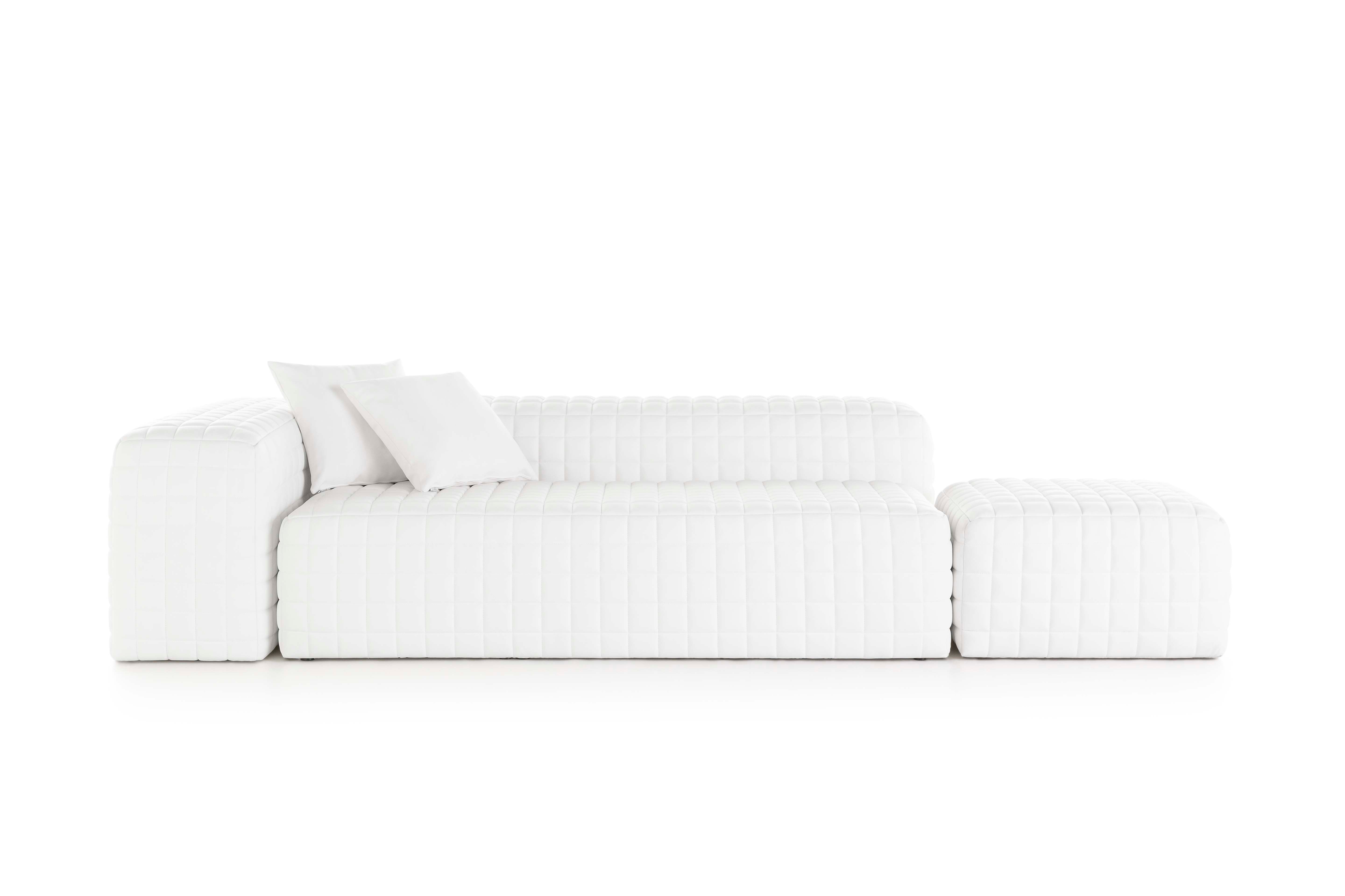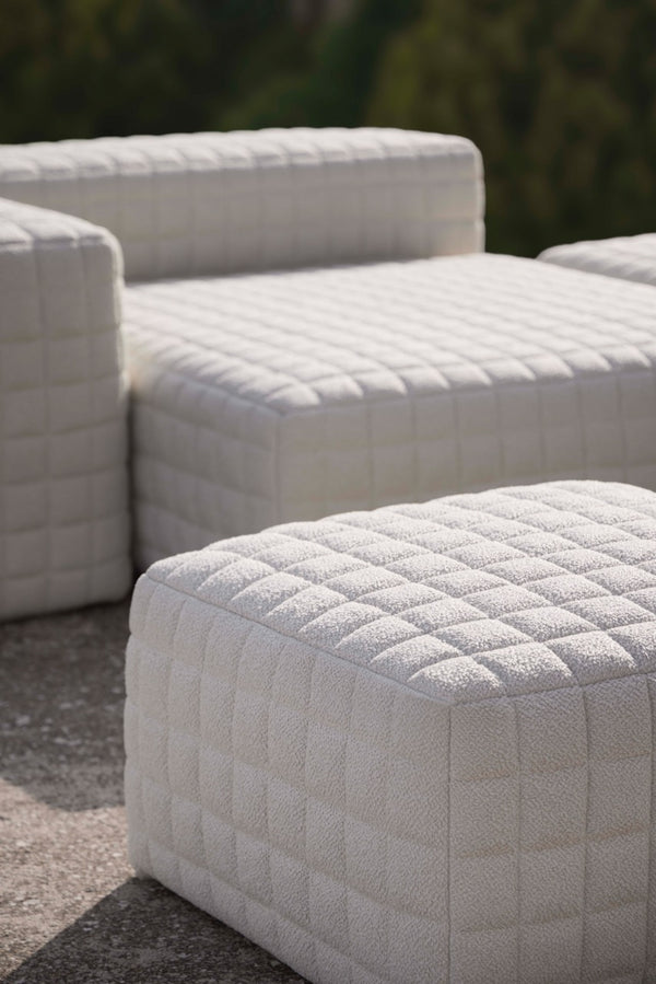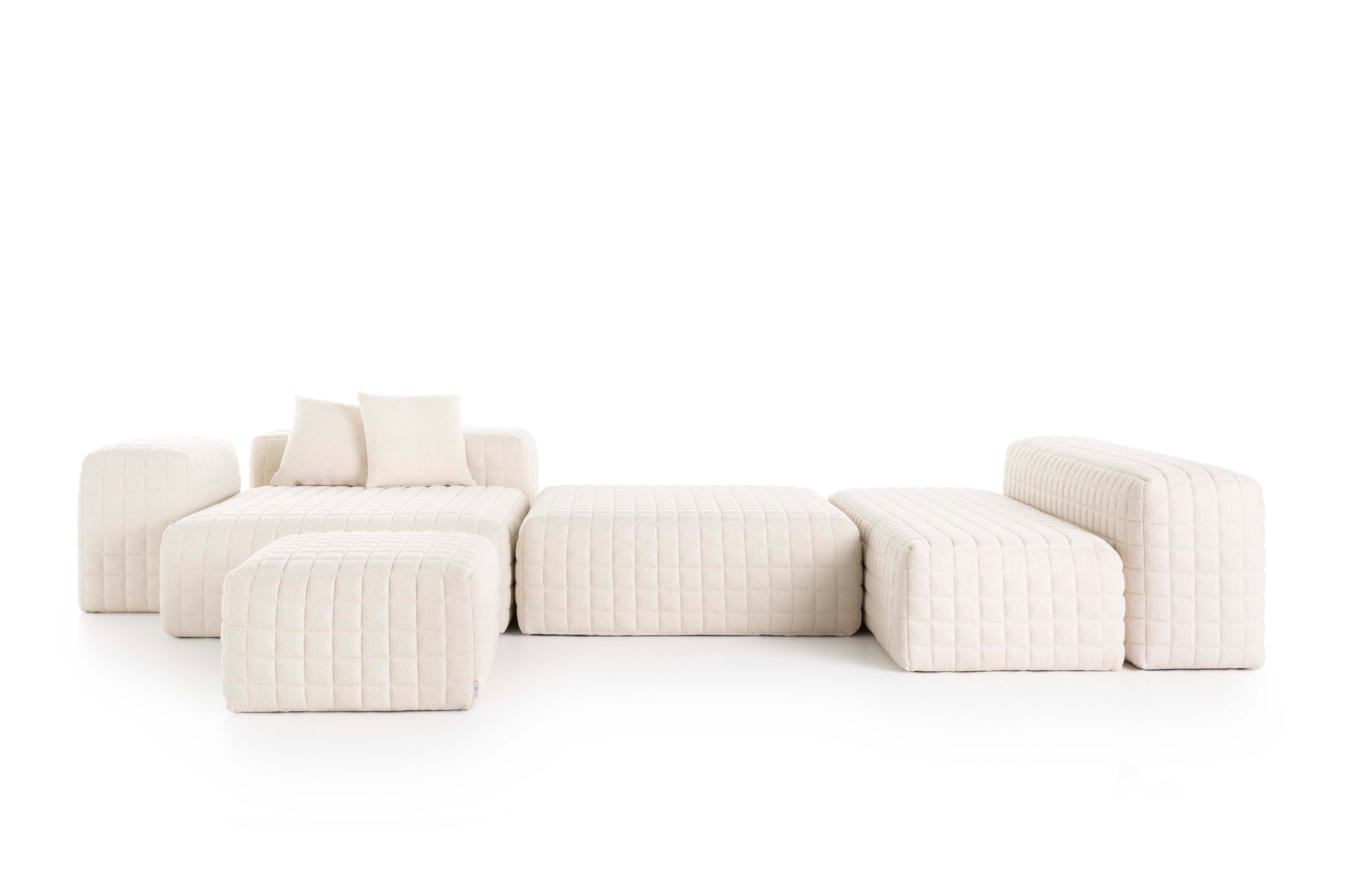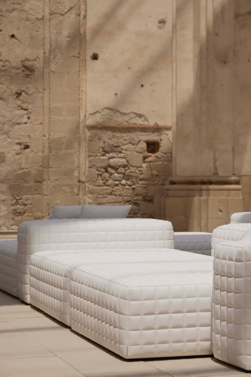 Die ERNO-Module sind bequeme Sitzgelegenheiten mit gepolstertem Design und geometrischen Linien, die aus minimalen Strukturelementen bestehen und deren ausgeklügeltes Aluminium-Verbindungssystem es ermöglicht, verschiedene Kombinationen zu schaffen, je nach Raum und den Bedürfnissen des Augenblicks. Sie sind in 3 verschiedenen Größen erhältlich, so dass die Konfigurationsmöglichkeiten unendlich sind, was diese exklusiven Module zur idealen Lösung sowohl für private Gärten als auch für große Objektbereiche macht.