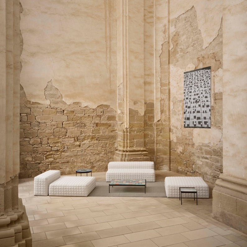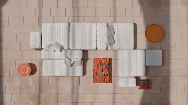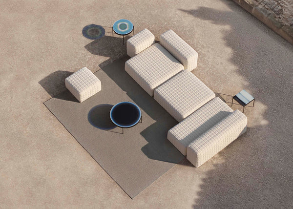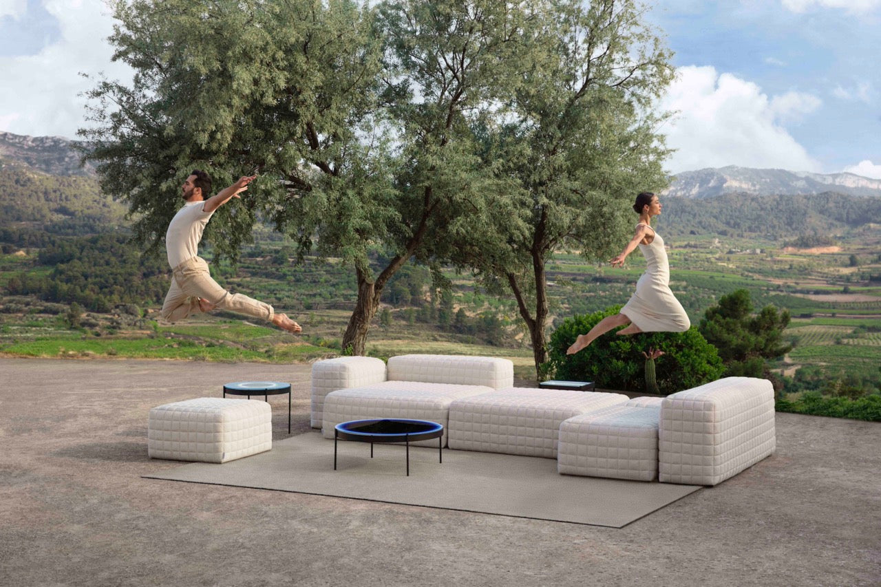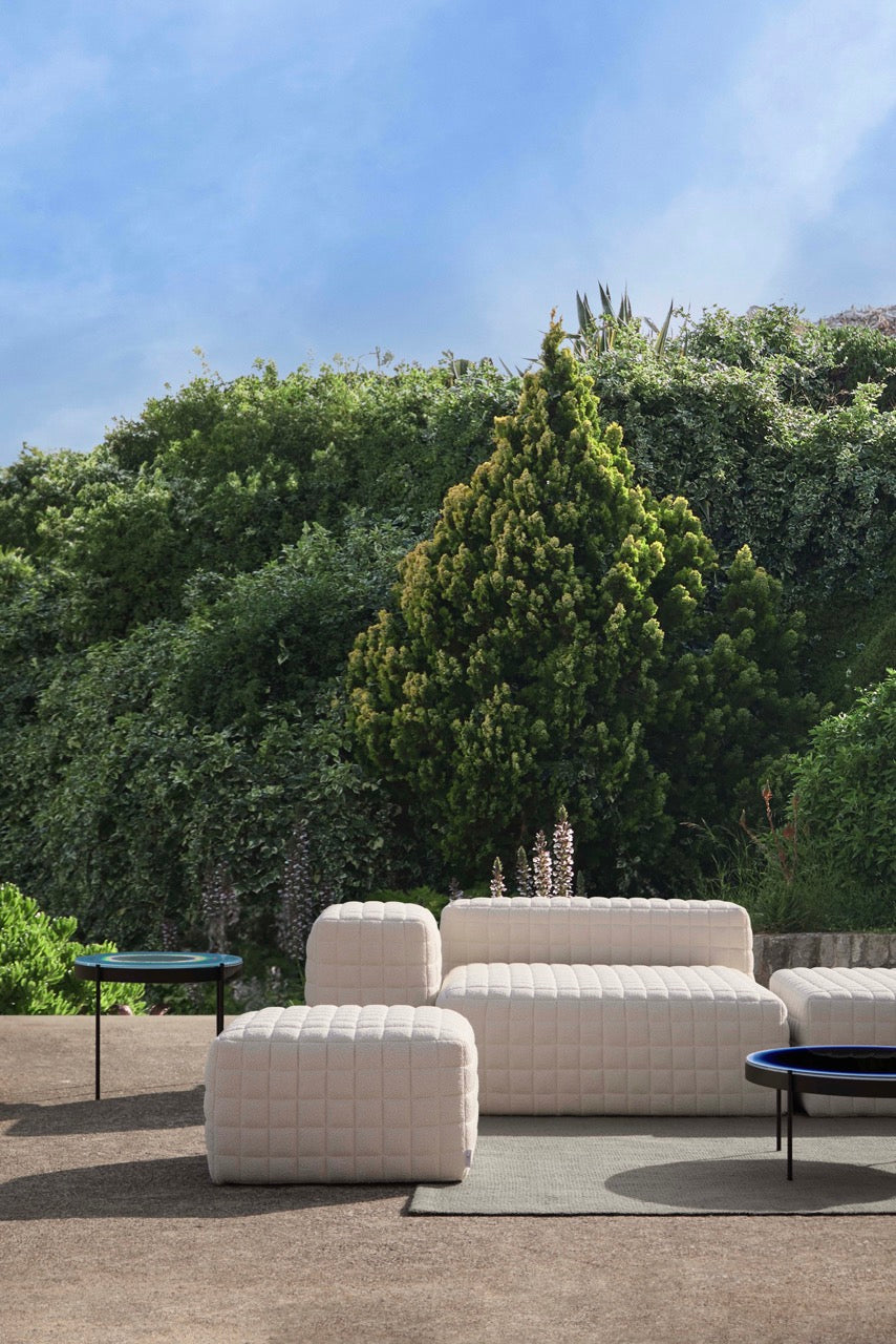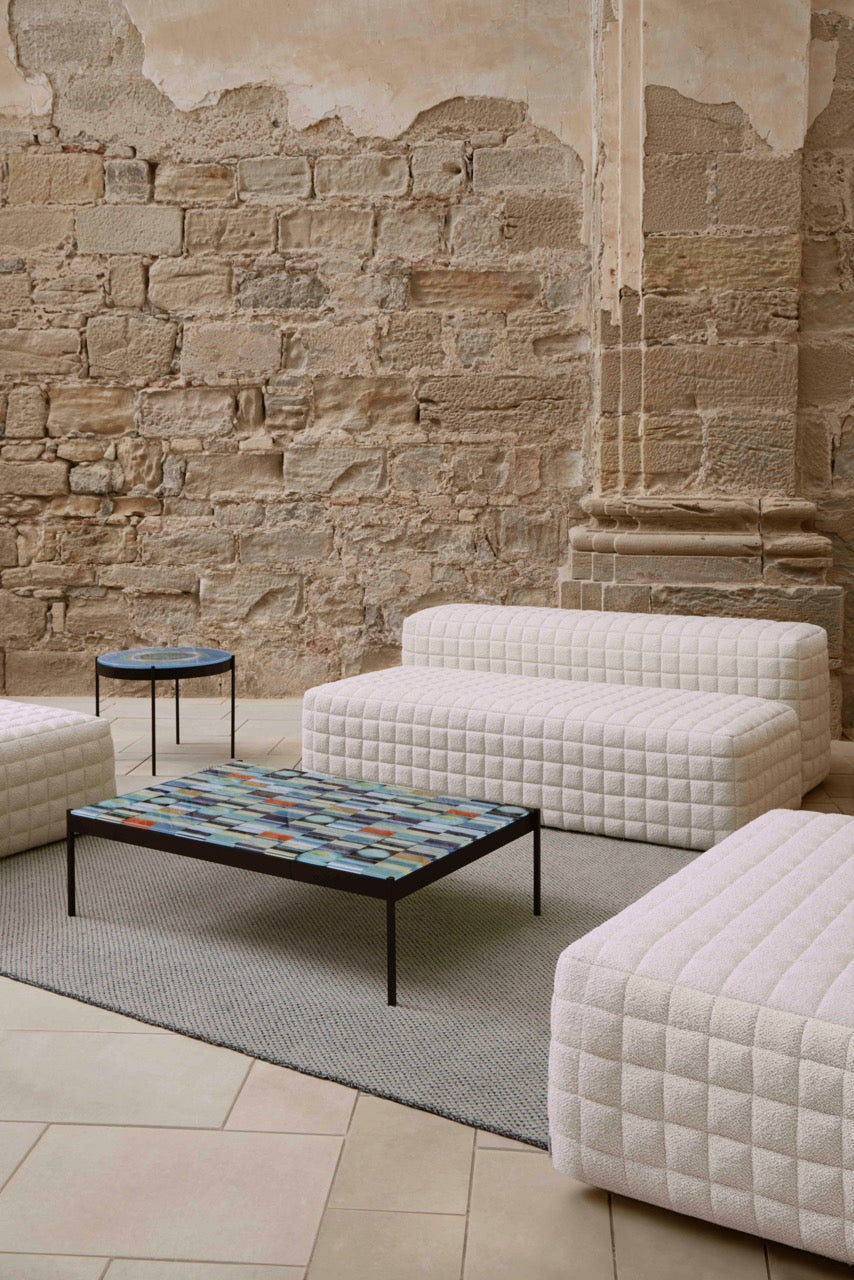 Die von Alejandra Gandía-Blasco für GANDIABLASCO entworfene Kollektion ERNO überträgt den formalen und spielerischen Geist des Rubik-Würfels auf die Welt der Außenmöbel. Die gepolsterten, modularen Hocker dieser Kollektion von Outdoor-Möbeln ermöglichen es, den Raum zu gestalten und laden je nach Konfiguration zum Sitzen, Liegen oder Faulenzen ein.
