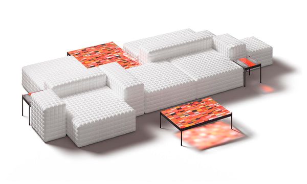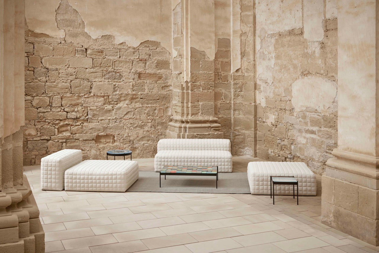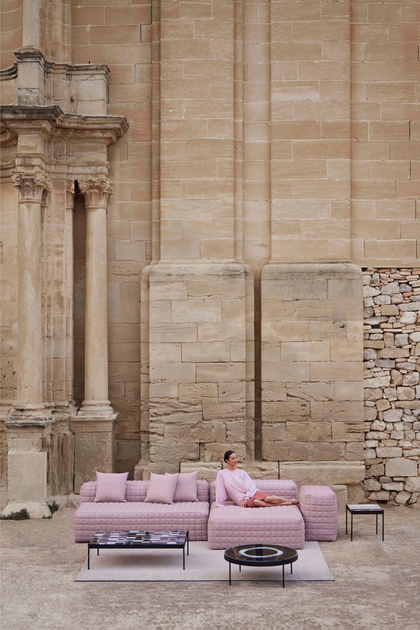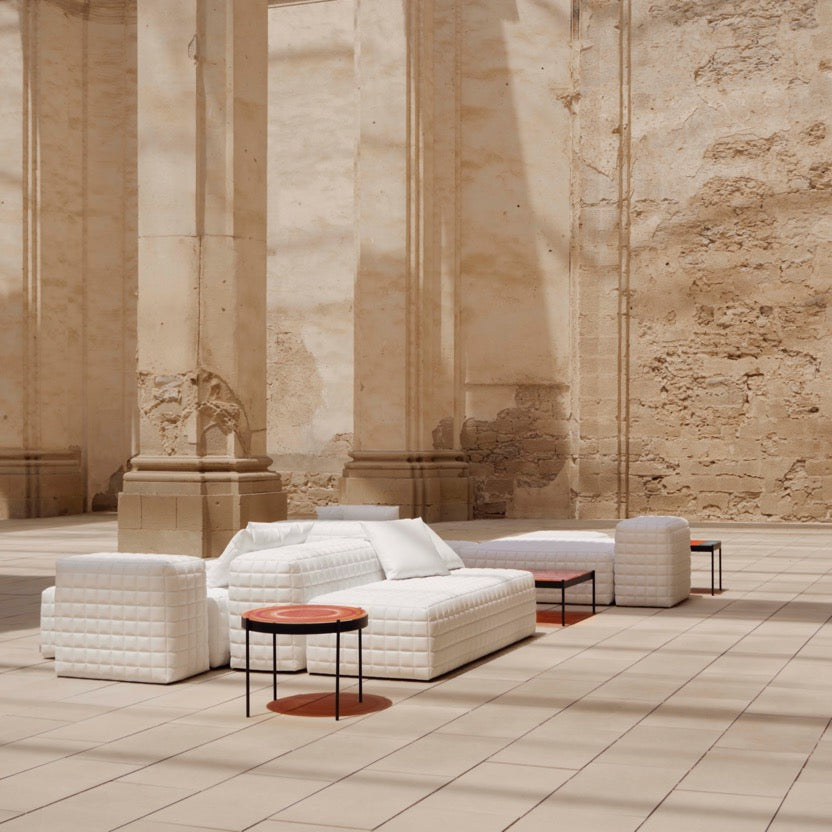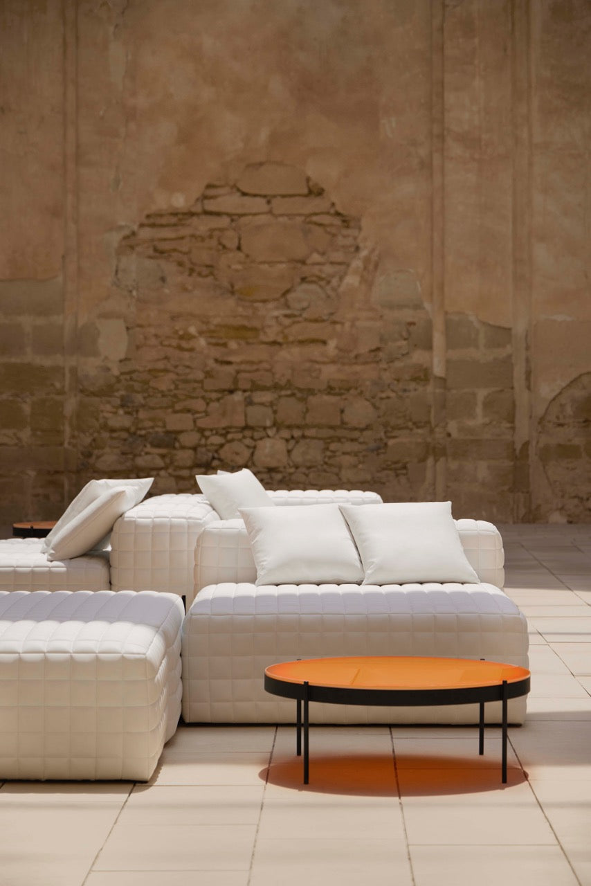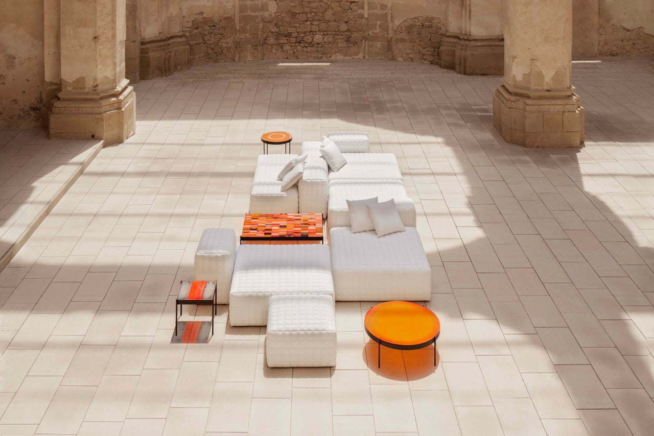 Die von Alejandra Gandía-Blasco für GANDIABLASCO entworfene Kollektion ERNO überträgt den formalen und spielerischen Geist des Rubik-Würfels auf die Welt der Außenmöbel. Die gepolsterten, modularen Hocker dieser Kollektion von Outdoor-Möbeln ermöglichen es, den Raum zu gestalten und laden je nach Konfiguration zum Sitzen, Liegen oder Faulenzen ein.