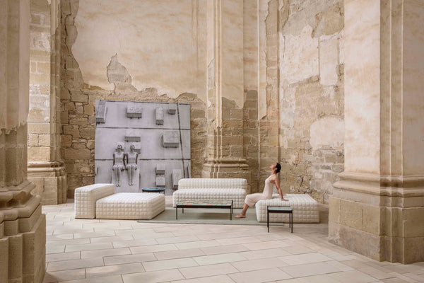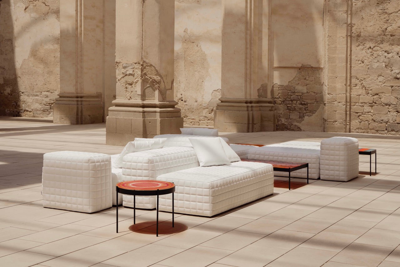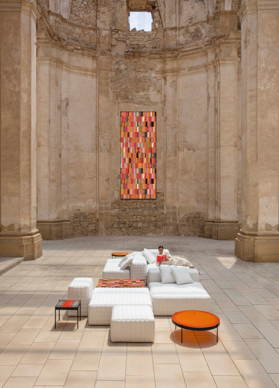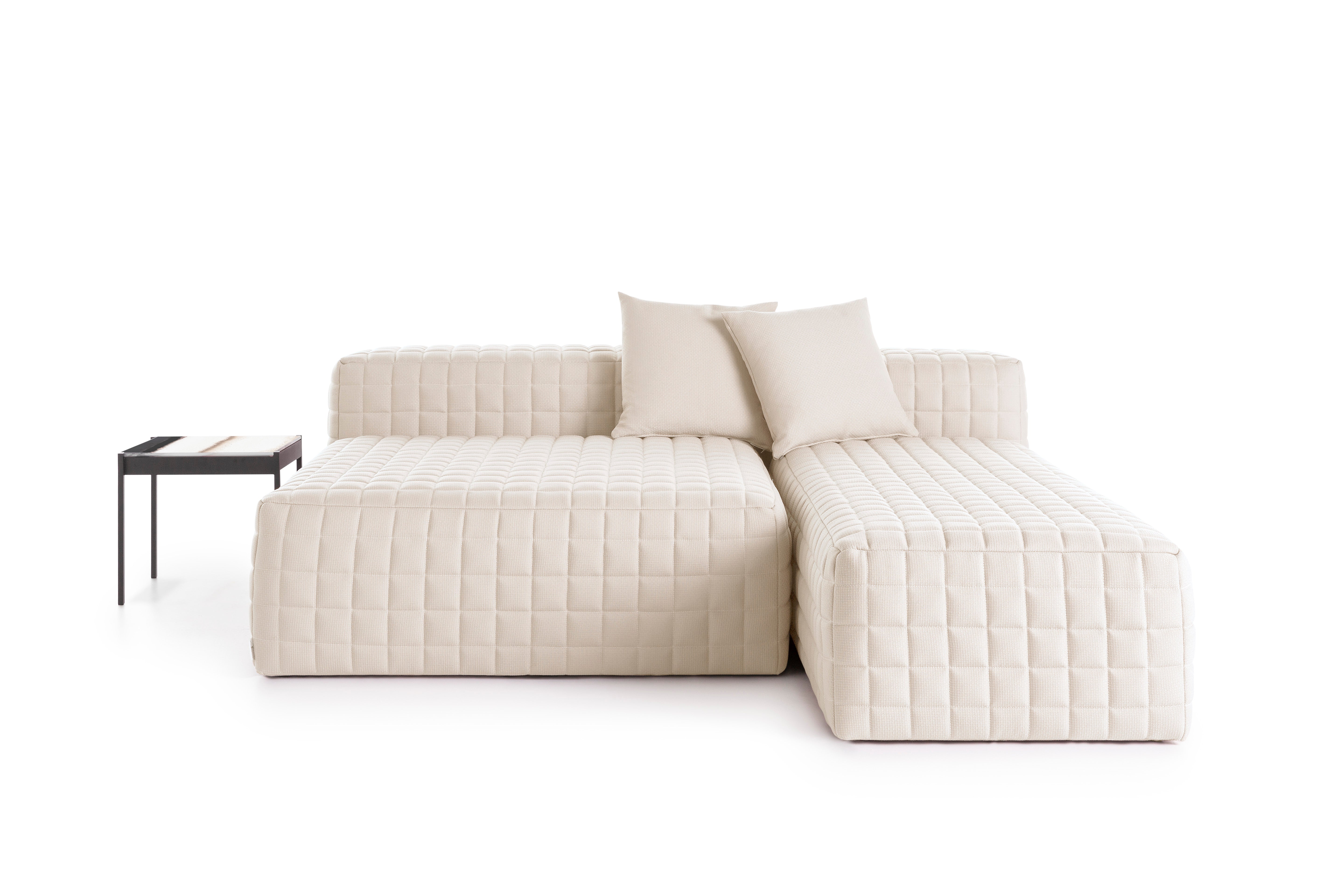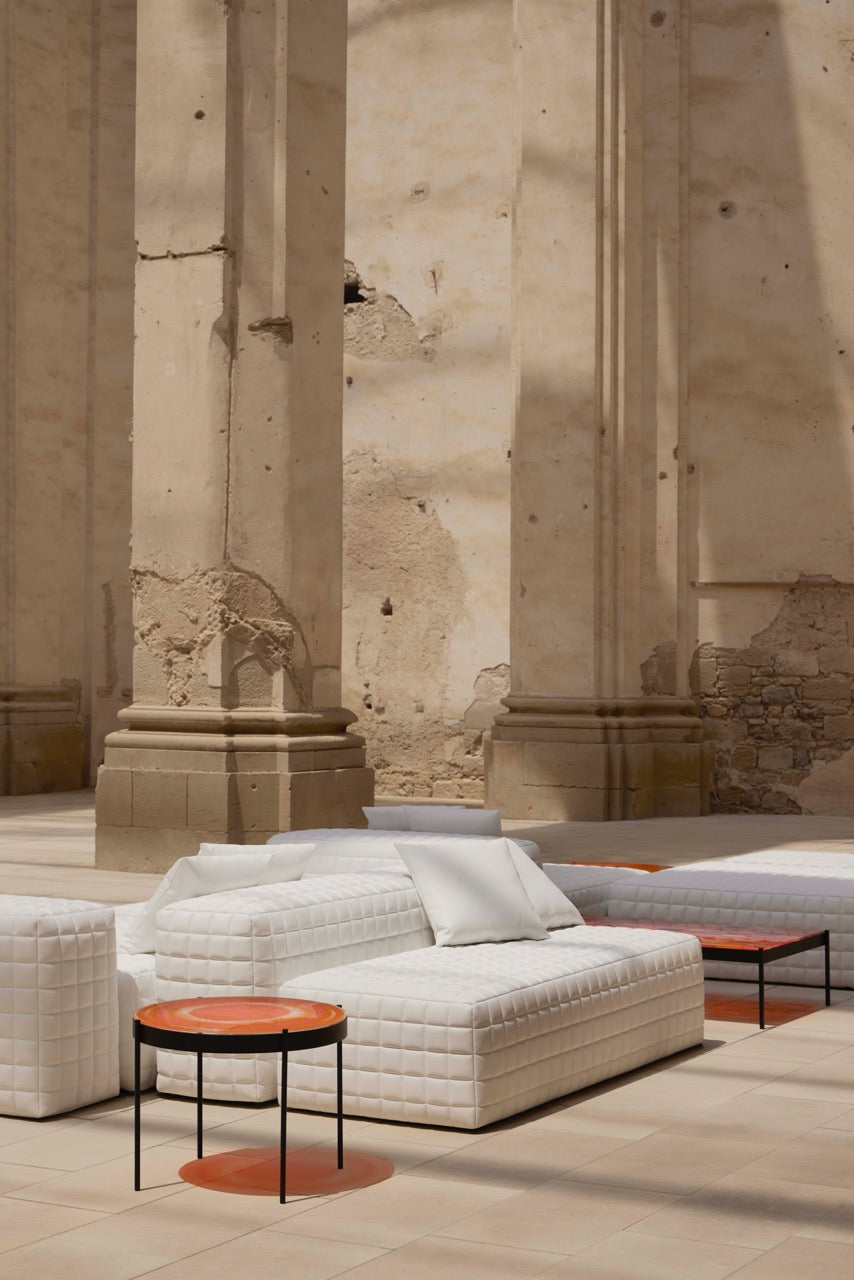Die von Alejandra Gandía-Blasco für GANDIABLASCO entworfene Kollektion ERNO überträgt den formalen und spielerischen Geist des Rubik-Würfels auf die Welt der Außenmöbel. Die gepolsterten, modularen Hocker dieser Kollektion von Outdoor-Möbeln ermöglichen es, den Raum zu gestalten und laden je nach Konfiguration zum Sitzen, Liegen oder Faulenzen ein.