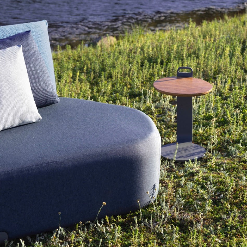 Der Couchtisch D36 ist die perfekte Ergänzung zu den modularen Sofas der gleichen Kollektion und eignet sich für jeden Raum, von großen Außenterrassen mit Blick auf die Küste bis hin zu geräumigen Wohnzimmern in Landhäusern. Der Tisch für den Außenbereich besteht aus widerstandsfähigem, pulverbeschichtetem Aluminium, das ihm eine besondere Leichtigkeit verleiht, und seine Platte ist in zwei Ausführungen erhältlich: Iroko-Holz mit natürlichem Touch und das extrem widerstandsfähige Material Dekton® von Cosentino.