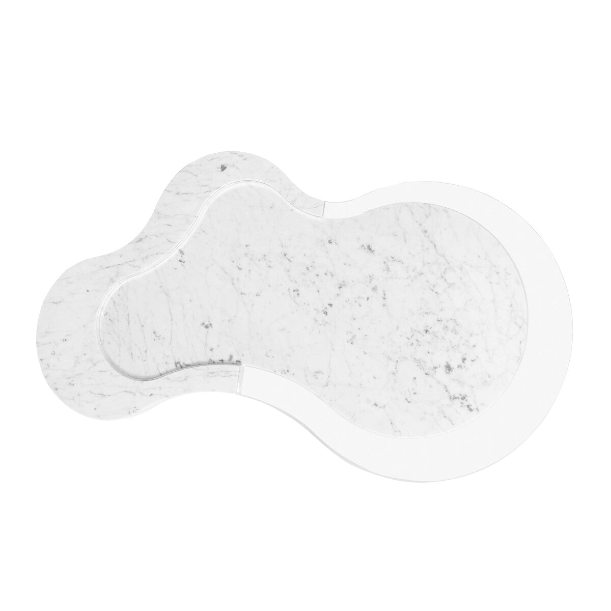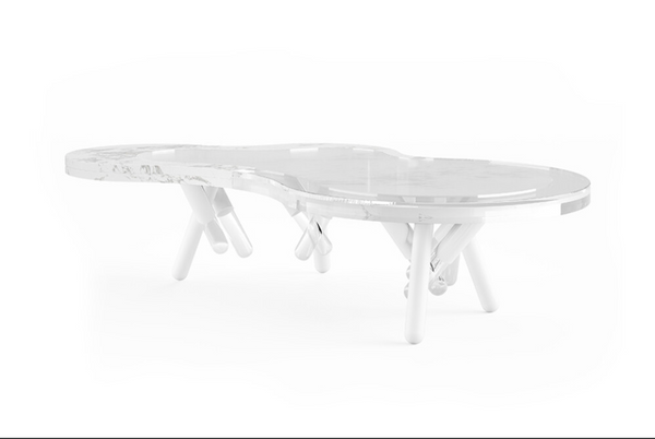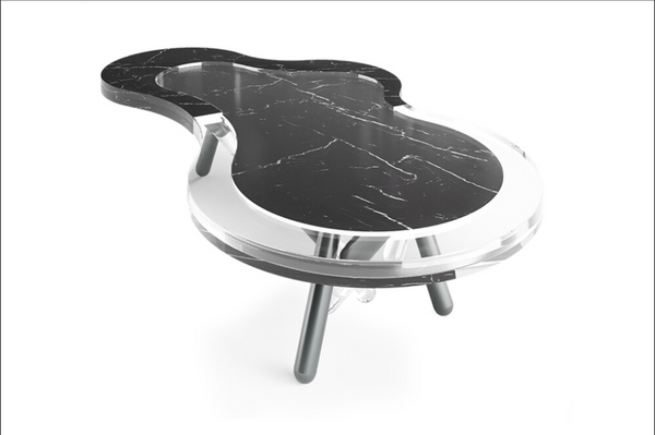 Portugiesischer Marmor komponiert mit Tischplatte und Beine aus klarem Acrylglas.