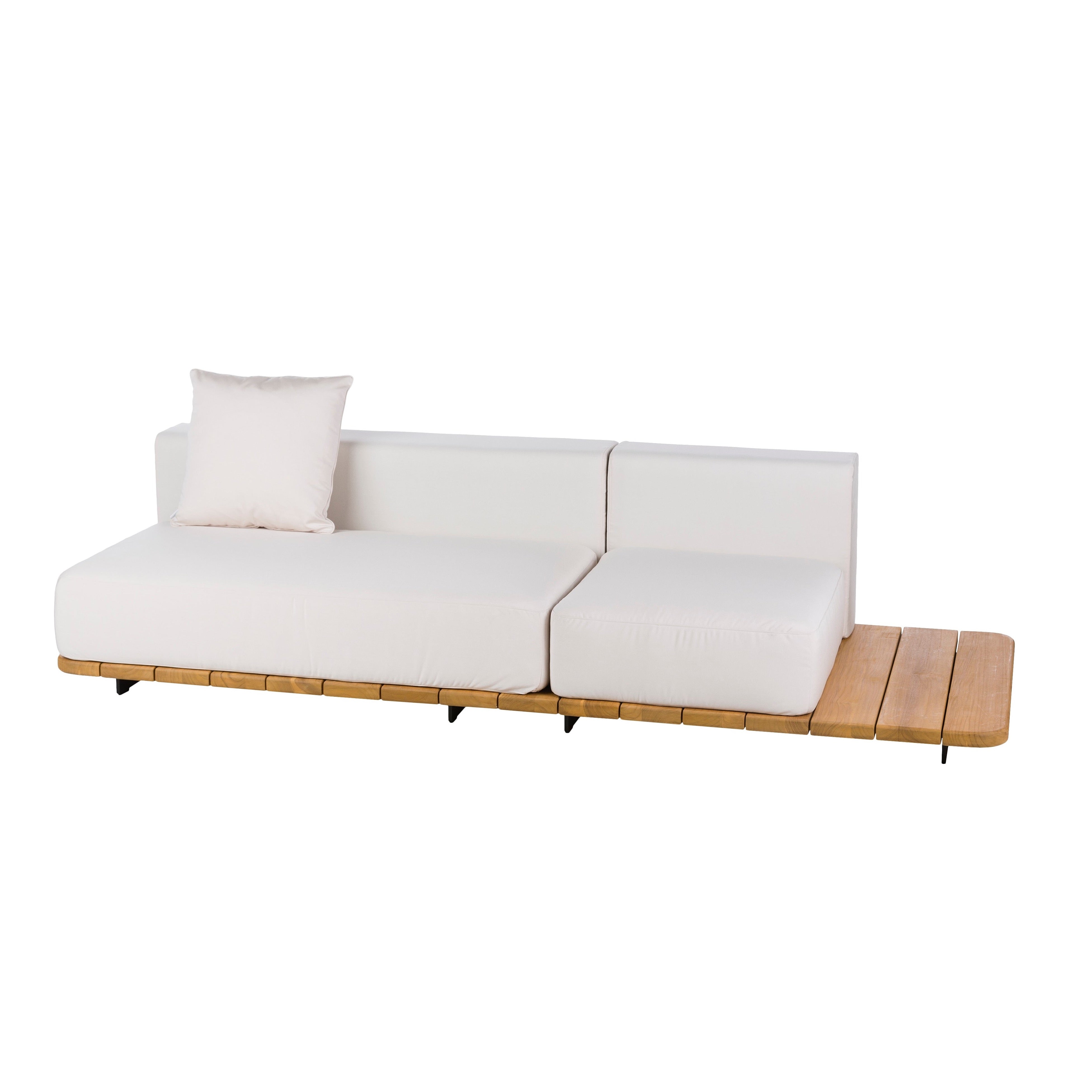 3 Sitzer Sofa Basis 246 x 92 aus Teakholz von Burma mit Beinen aus epoxylackiertem Aluminium Farbe Metallic Grey 56, Sitzkissen aus Schaumstoff von 35 kg. Mit undurchlässigem Innenbezug und Außenbezug mit Stoffen der Point Musterpalette. Sie können die Kissen auch ohne Stoff oder mit Ihrem eigenen Stoff kaufen.