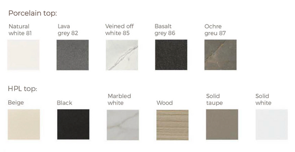 Weitere Kombinationen aus Gestellfarbe und Platte auf Anfrage.