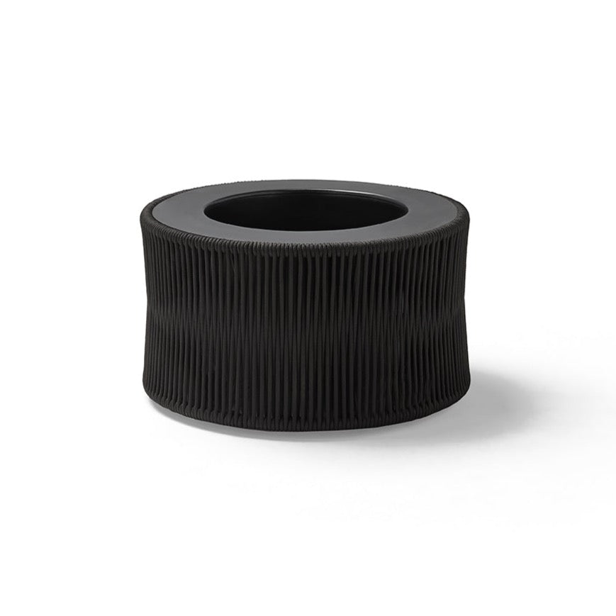Hocker. Gestell aus pulverbeschichtetem Aluminium, umflochten mit Polyesterseilen in drei Ausführungen: Crema - Turrón (Nougatfarben) 61, Gris - Taupe 60 und Negro (Schwarz) 59.