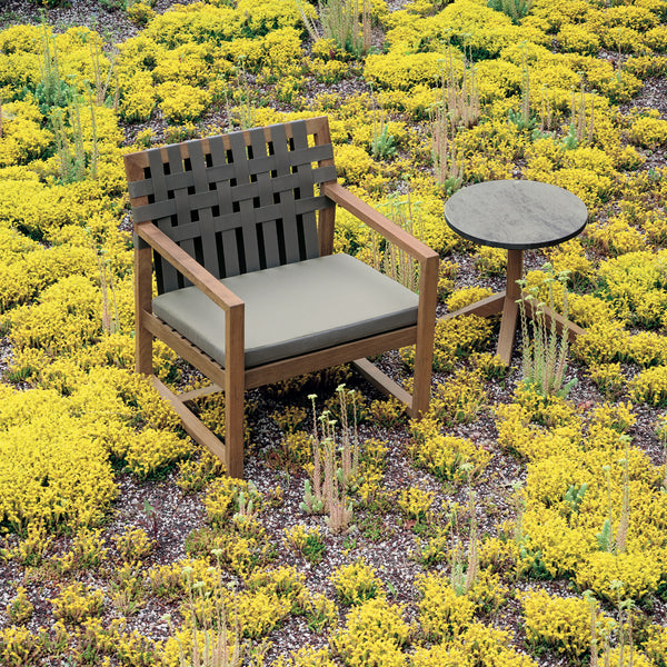 Der Sessel aus der Kollektion NETWORK zeichnet sich durch seine massive Teakholzstruktur aus, das Material der Wahl für die gesamte Linie, die großzügige Sitzfläche und die Rückenlehne, die in einem rhythmischen Wechsel von vollen und leeren Räumen gewebt sind.