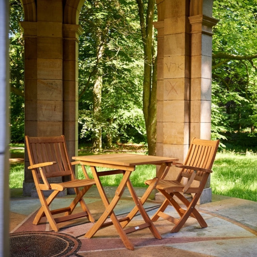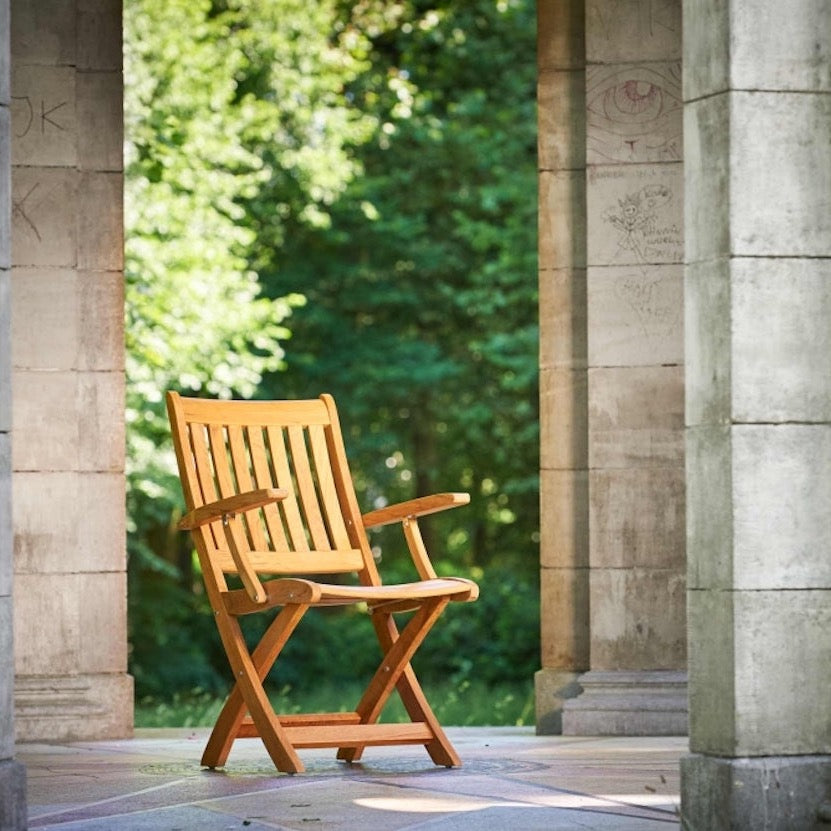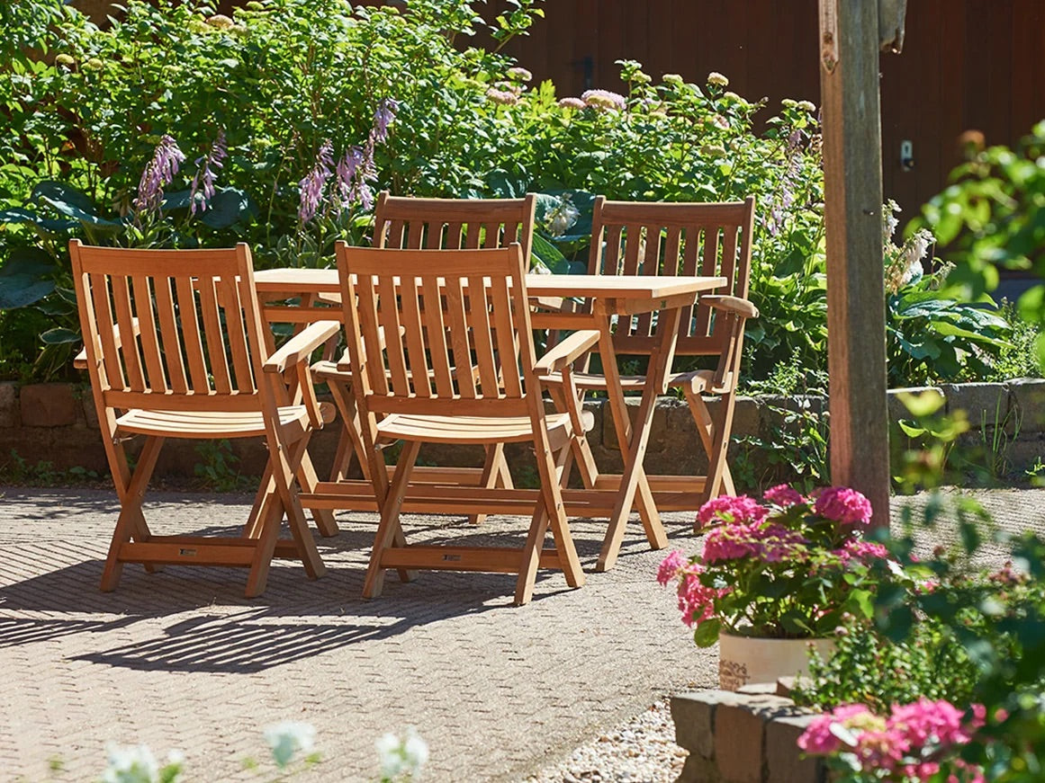 Mit seinem klassischen Design fügt sich der Teak-Klappsessel wunderbar in jede Gartengestaltung ein und zeigt nicht nur dort seine Flexibilität.