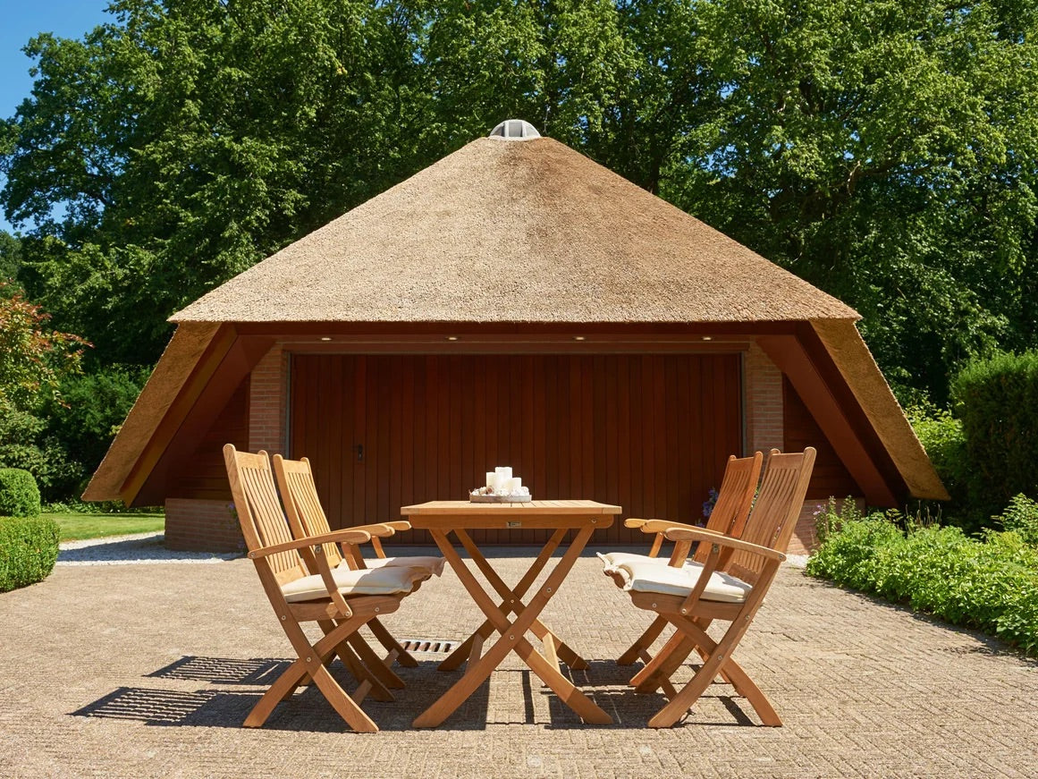 Das natürliche Aussehen von Teakholz passt perfekt in jede Gartengestaltung und spiegelt eine natürliche Umgebung wider. Der Klappsessel Alexia ist aus hochwertigem Teakholz gefertigt und mit seiner natürlichen, fließenden Optik die perfekte Ergänzung für Ihren Außenbereich.