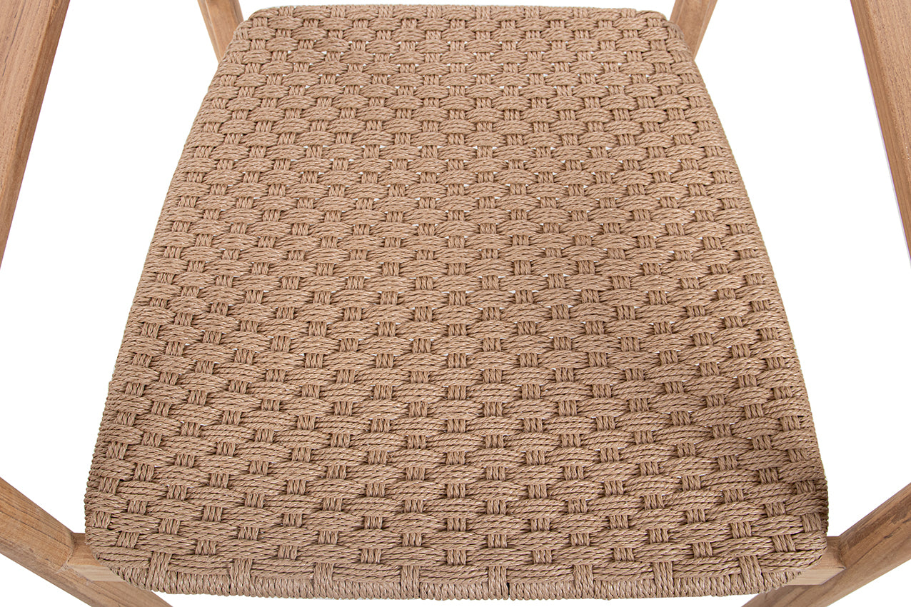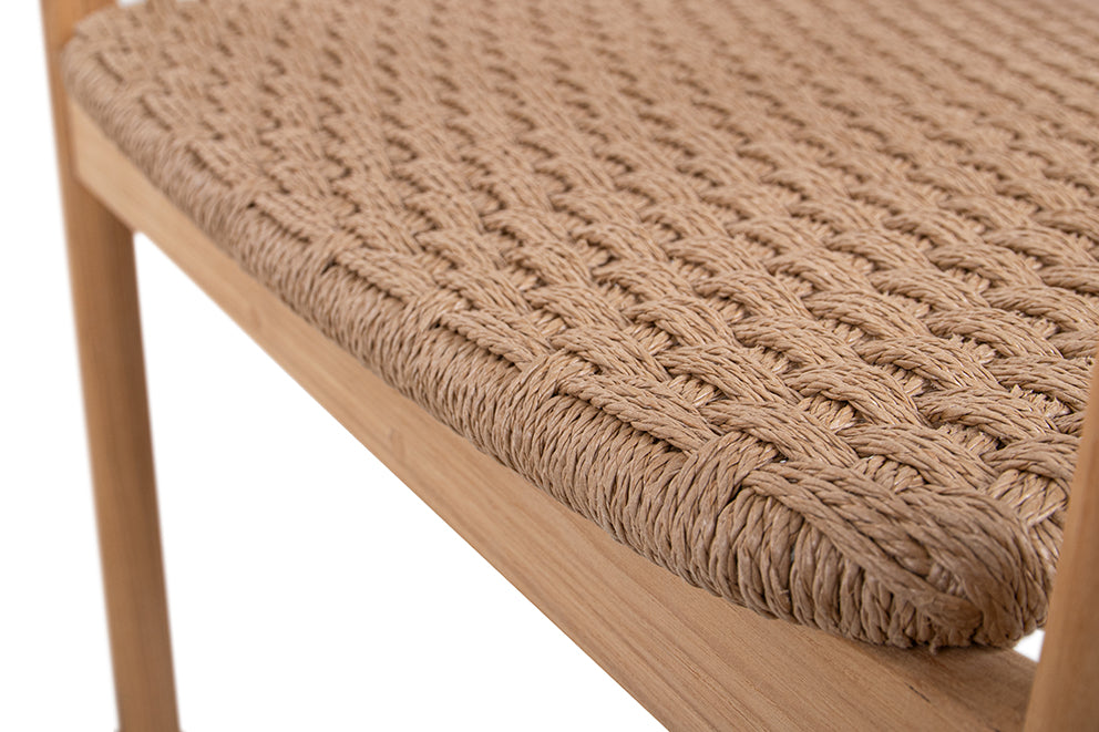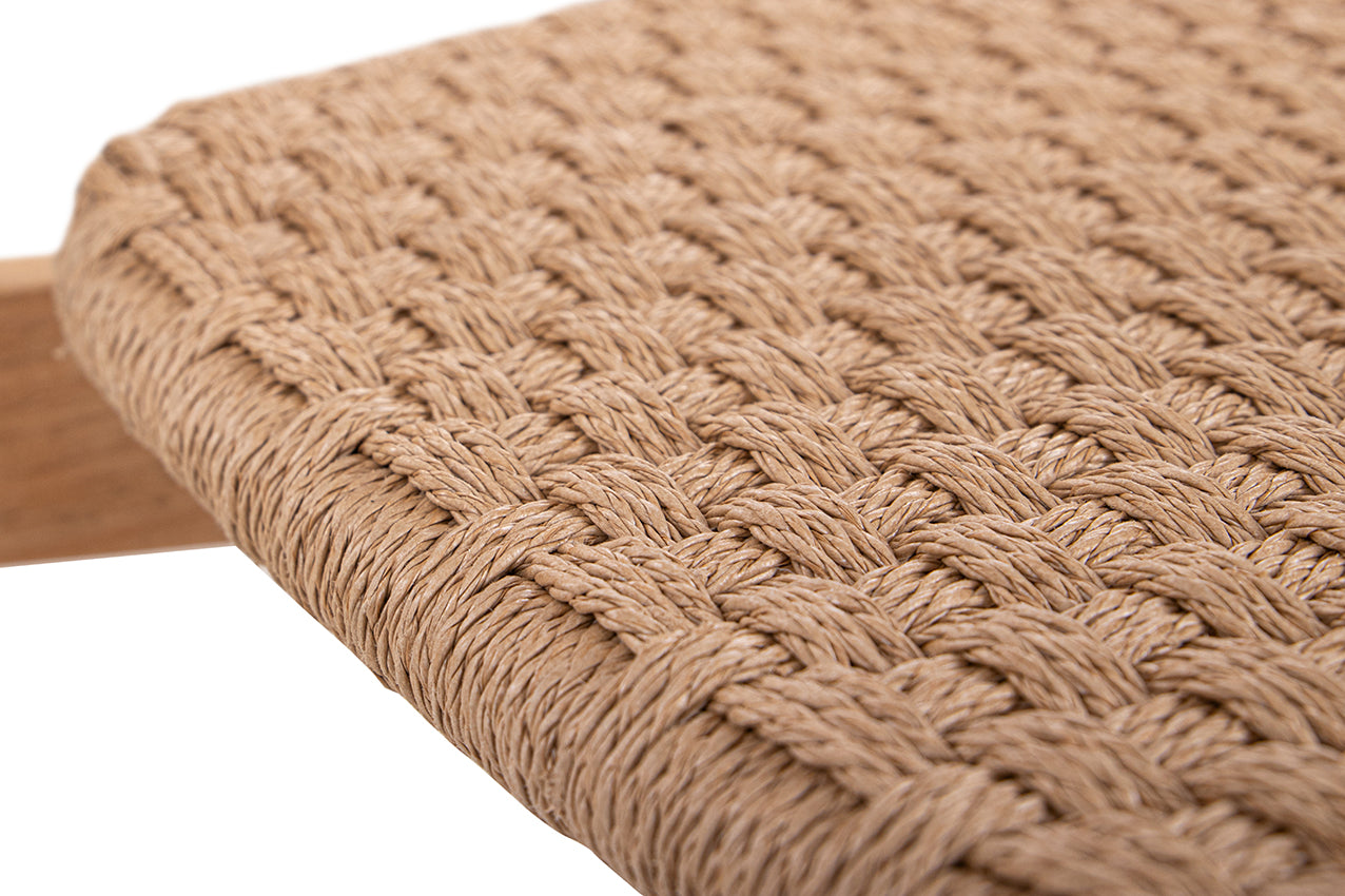 Die Sitzfläche besteht aus dänischem Cord (HDPE), einem handgefertigten Geflecht, das sich durch seine Robustheit und Eleganz in Verbindung mit einer angenehmen Haptik auszeichnet.