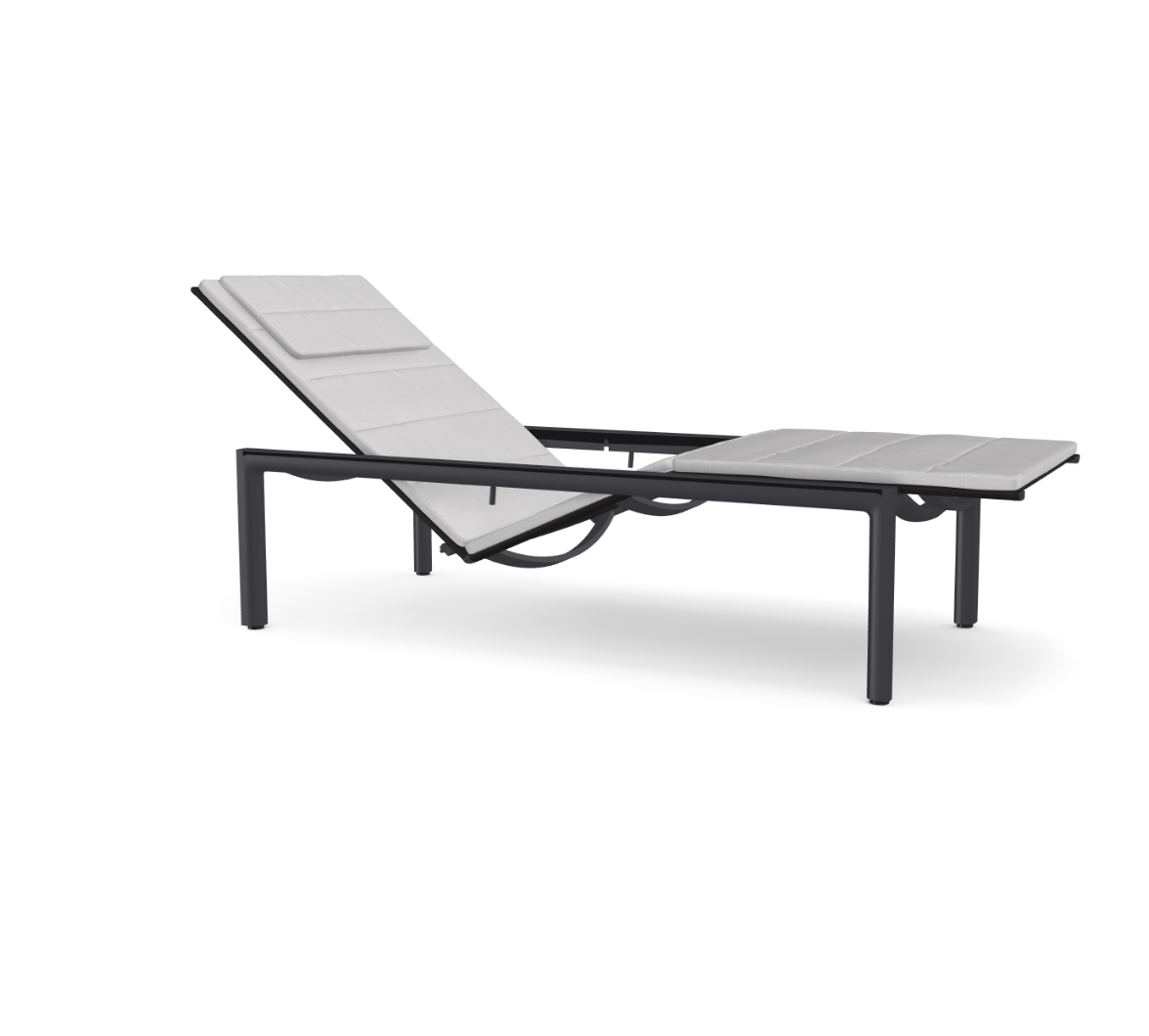 Die Illum-Sonnenliege ist nicht nur verstellbar, sondern sie senkt sich auch und bietet dadurch einen unvergleichlichen Komfort. Alle Mechanismen – ein neu entwickeltes Pumpensystem – sind raffiniert verborgen. Lesen, Plaudern, Entspannen .... nie zuvor war es so einfach. Der Rahmen aus pulverbeschichtetem Aluminium ist sehr leicht zu pflegen und der Sitz aus Batyline garantiert eine dauerhaft hohe Spannung und eine ausgezeichnete Resistenz gegen UV-Strahlung, Schmutz und Pilze.