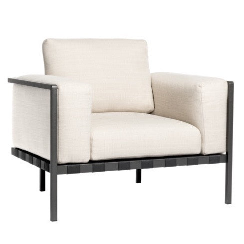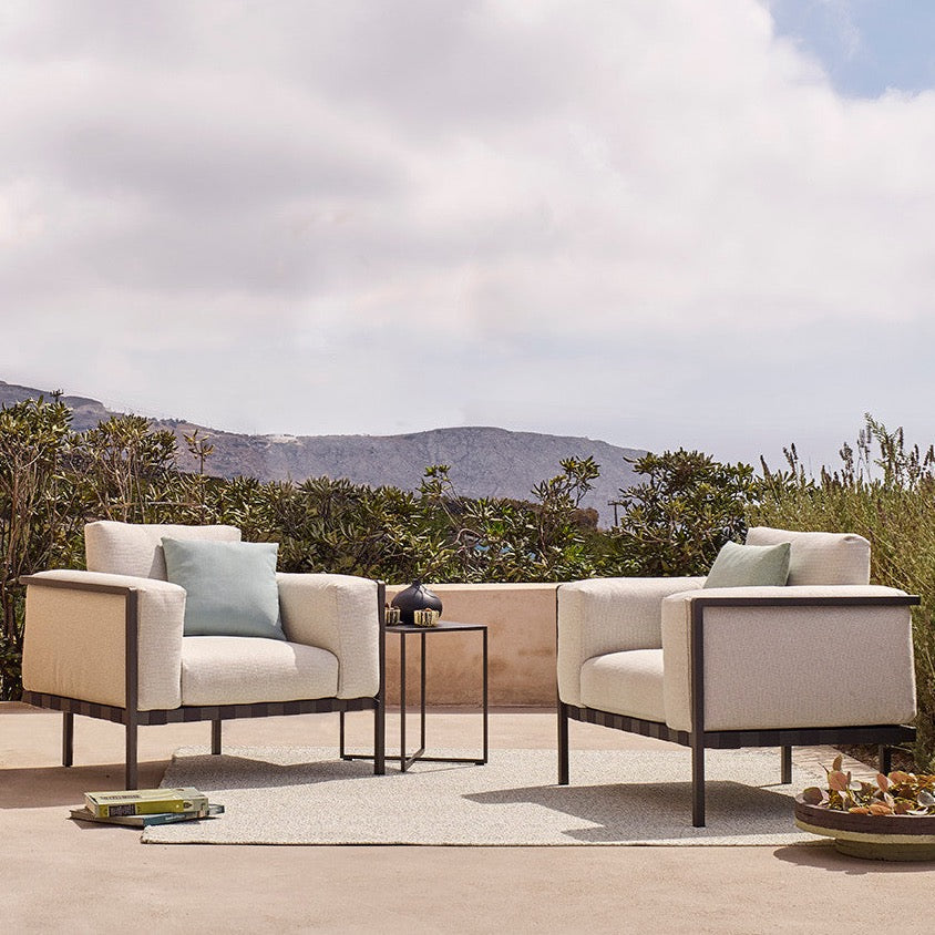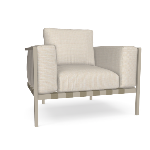 Ein subtiler Rahmen mit geschwungenen Armlehnen steht in schönem Kontrast zum Volumen der Kissen, die von einem Geflecht aus breiten Textilbändern getragen werden. Der zeitlose und elegante Natal Alu Sofasessel ist ein Loungesessel, der auf jede Terrasse passt. Der Aluminiumrahmen ist mit einem extrem haltbaren, UV-beständigen und kratzfesten Strukturlack pulverbeschichtet, der auch für einen wunderbar matten Look sorgt. Besonderes Augenmerk wurde auf die Outdoorkissen gelegt, die eine luftdurchlässige, wasserabweisende Füllung haben, wodurch sie einem Regenguss leicht standhalten können. Auch die Nähte der Kissenhülle wurden von innen abgedeckt, damit Feuchtigkeit keine Chance hat. Mit 2 verschiedenen Rahmenfarben und mehr als 100 luxuriösen Oberstoffen sind die Möglichkeiten endlos.