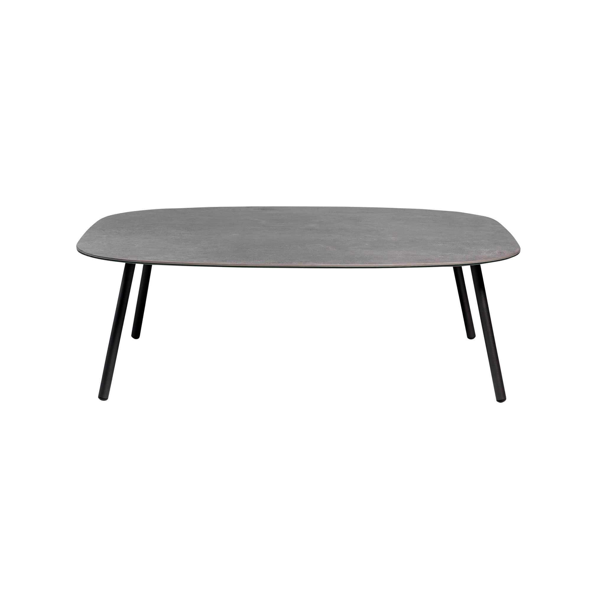 Um die exklusive Tosca Kollektion zu vervollständigen, entwarf Monica Armani einen Couchtisch und einen höheren Beistelltisch. Sie haben die gleichen schlanken, sich verjüngenden Beine wie die Stühle und eine Tischplatte mit einer einzigartigen ovalen Form. Die Keramiktischplatte hat ein subtiles, gewolktes Muster. Keramik ist ideal für den Außenbereich, sie ist sehr widerstandsfähig gegen Flecken, Kratzer, Frost und UV-Strahlen und zudem sehr pflegeleicht.
